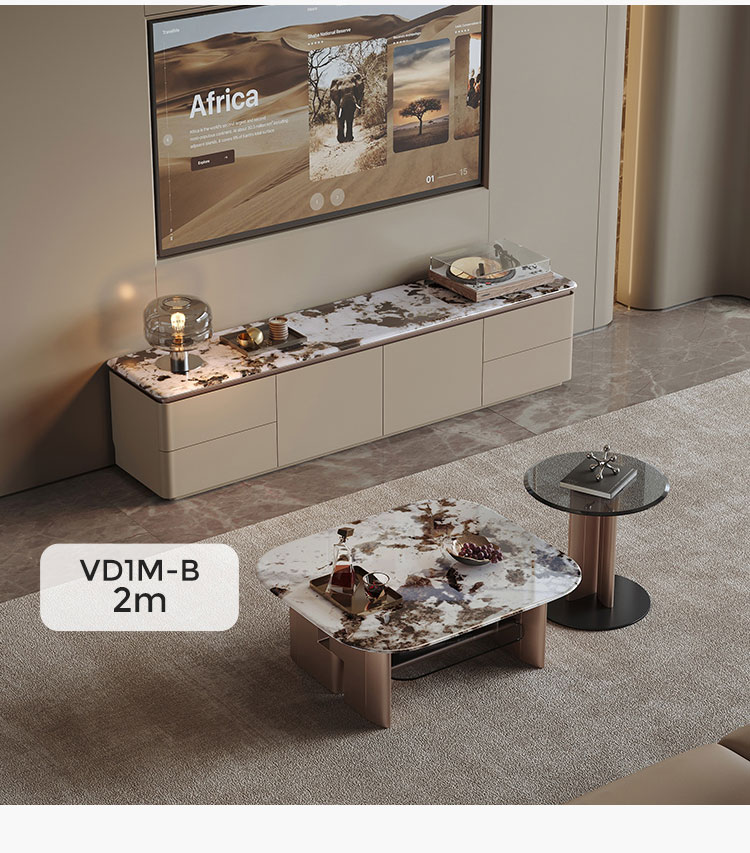 7Meja TV 2 Meter dengan Bagian Atas Marmer dan Beberapa Laci VD1M-B