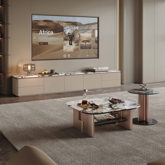 Dirancang untuk gaya dan fungsionalitas, meja TV 2 meter ini memiliki permukaan marmer premium yang menambahkan sentuhan elegan pada ruang tamu Anda. Bodinya terbuat dari kayu olahan yang tahan lama, memastikan penggunaan jangka panjang. Dengan beberapa laci yang luas, meja ini menawarkan ruang penyimpanan yang luas untuk menyimpan aksesori media dan perlengkapan rumah tangga Anda dengan rapi. Sempurna untuk rumah modern, meja TV ini memadukan desain ramping dengan solusi penyimpanan praktis.