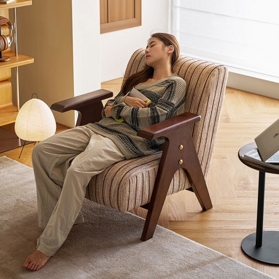 Didesain untuk kenyamanan abadi dan gaya tak lekang oleh waktu, kursi modern ini menggabungkan rangka kayu solid yang kokoh dengan pelapis kain premium. Dudukan dan sandaran yang empuk menawarkan dukungan luar biasa, menjadikannya tempat yang sempurna untuk membaca atau bersantai di ruang tamu Anda. Desainnya yang serbaguna berpadu sempurna dengan berbagai gaya dekorasi, dari pedesaan hingga modern. Tambahan yang tahan lama dan elegan untuk setiap rumah.