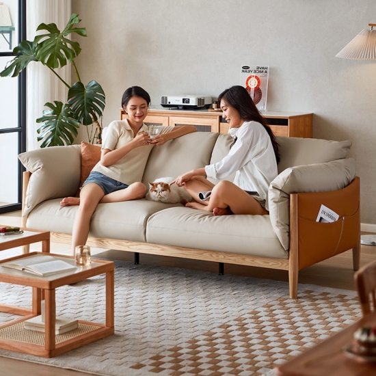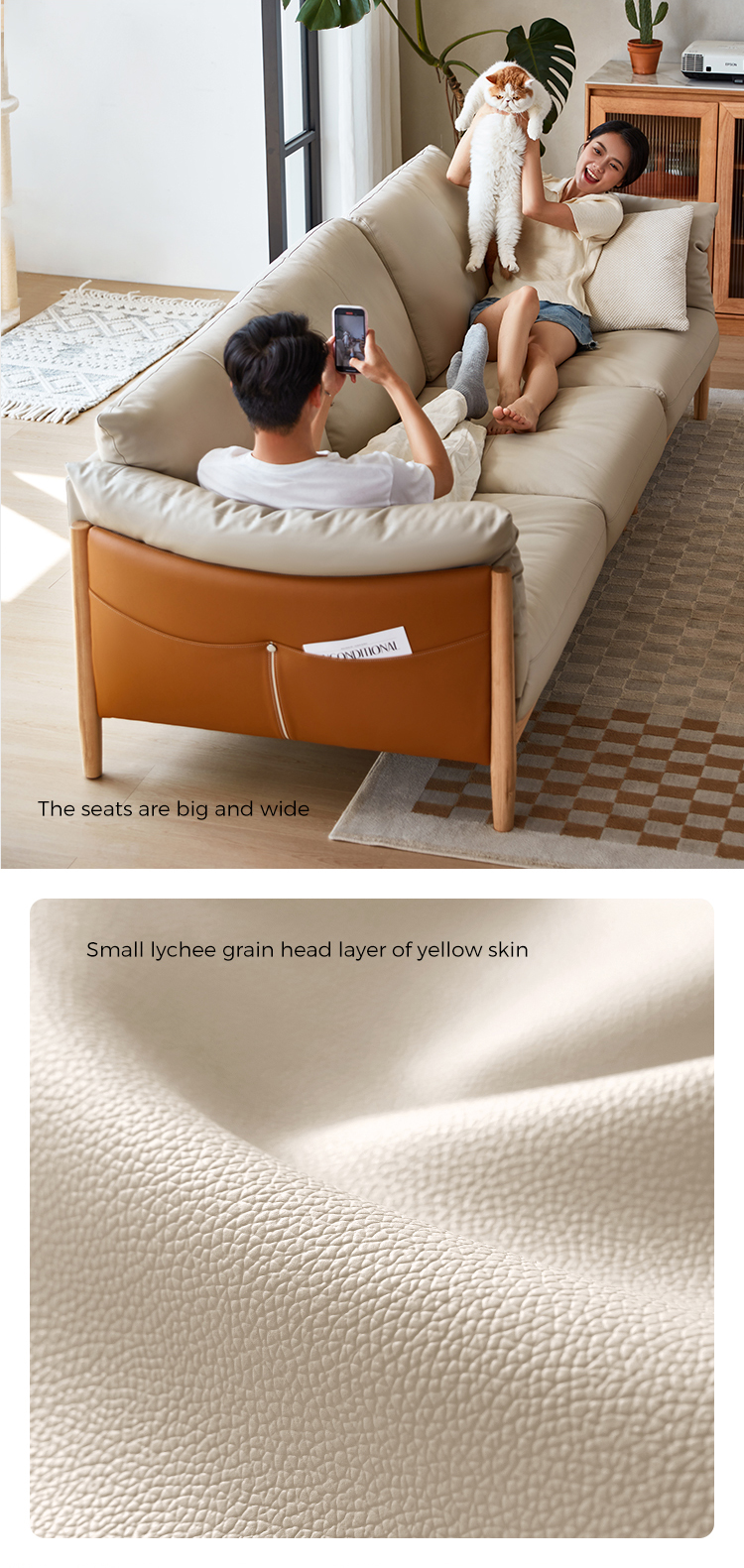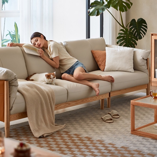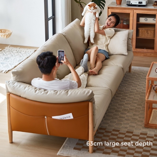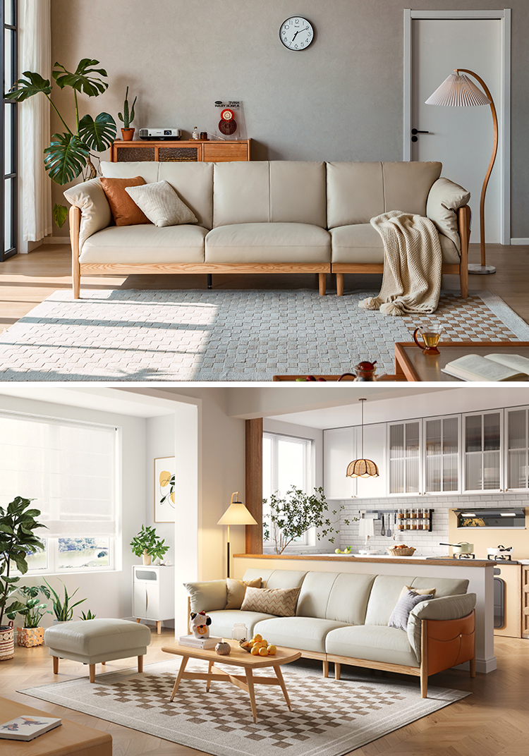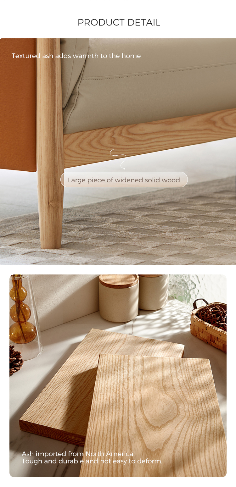 Ayo lihat sofa kulit terbaru dengan kaki kayu. Terbuat dari rangka kayu solid, rangka kokoh dengan blok sudut cukup luas untuk keluarga besar dan kursi santai berukuran besar. Bantalan kulit halus akan terasa empuk selama bertahun-tahun yang akan datang.