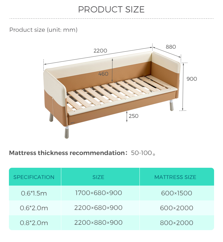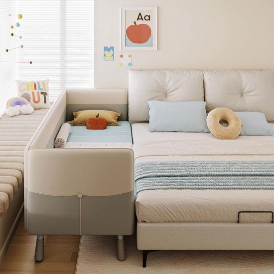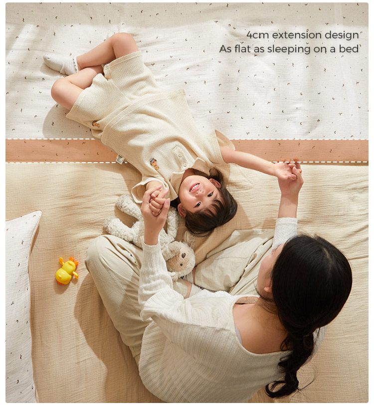 2. Desain Modular yang Dapat Disesuaikan: Berfungsi sebagai tempat tidur mandiri atau mudah disambungkan ke sebagian besar tempat tidur dewasa.