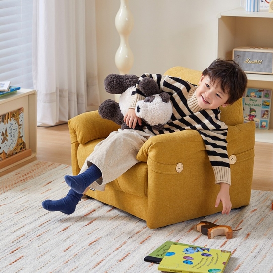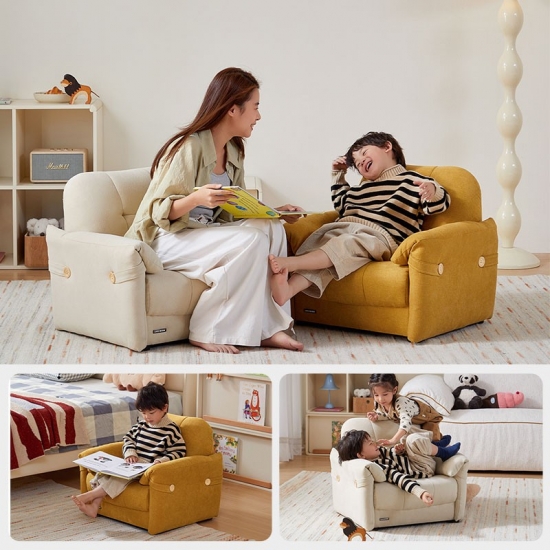 Desain yang Menggemaskan: Berbentuk seperti sofa mini untuk orang dewasa, kursi berlengan yang menawan ini dirancang sebagai tempat yang nyaman dan pribadi yang pasti akan disukai anak-anak.