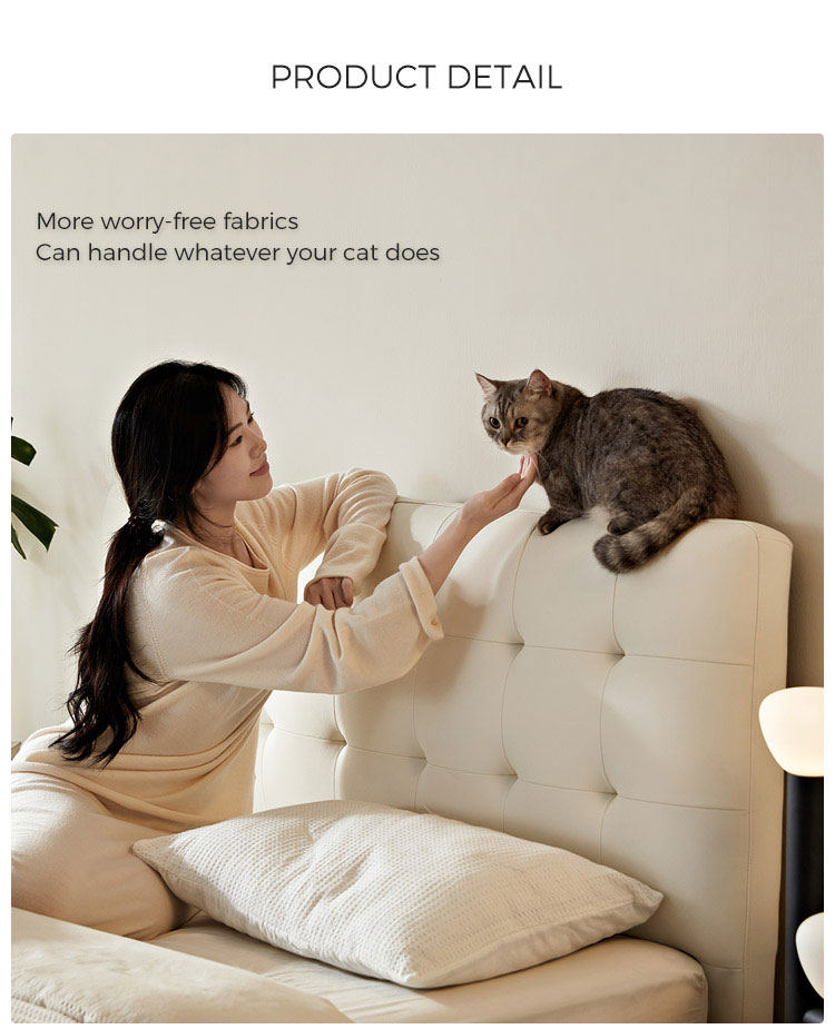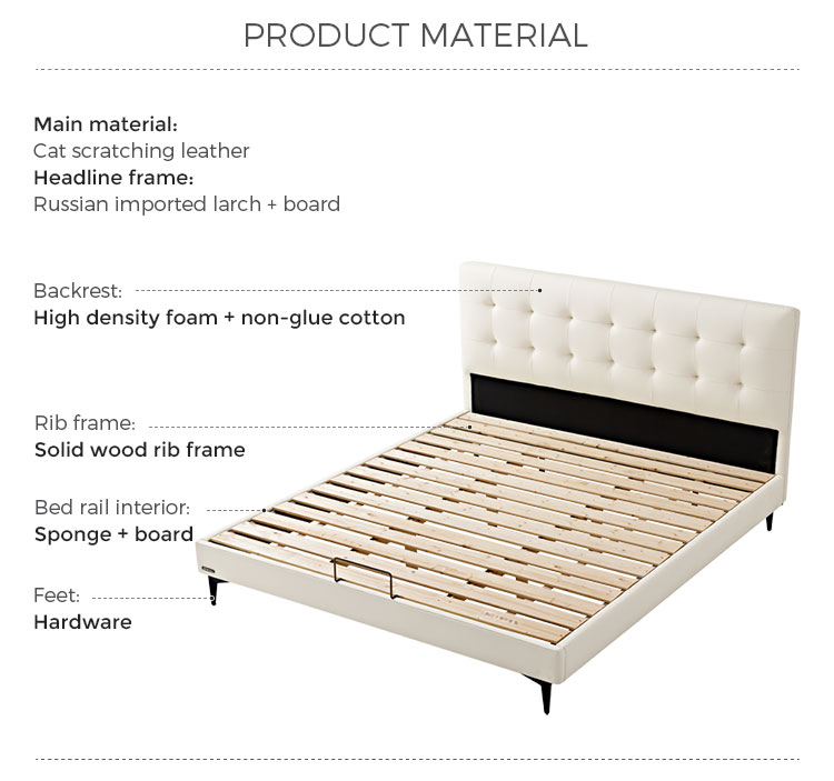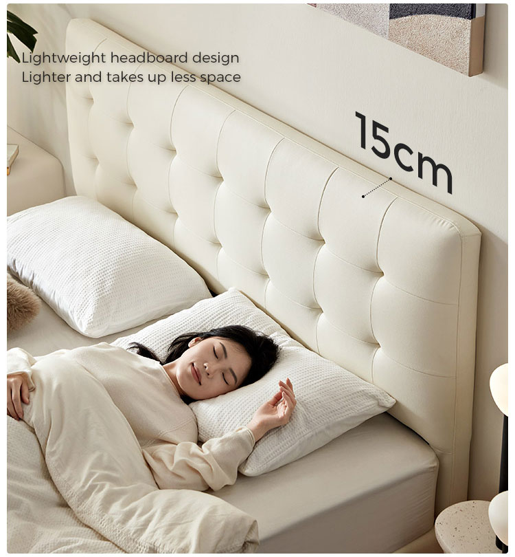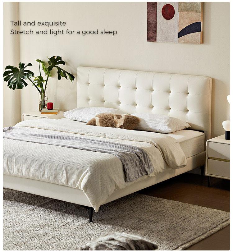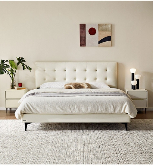 7Tempat Tidur Kulit Chesterfield Putih Keju LINSY BC067-A1