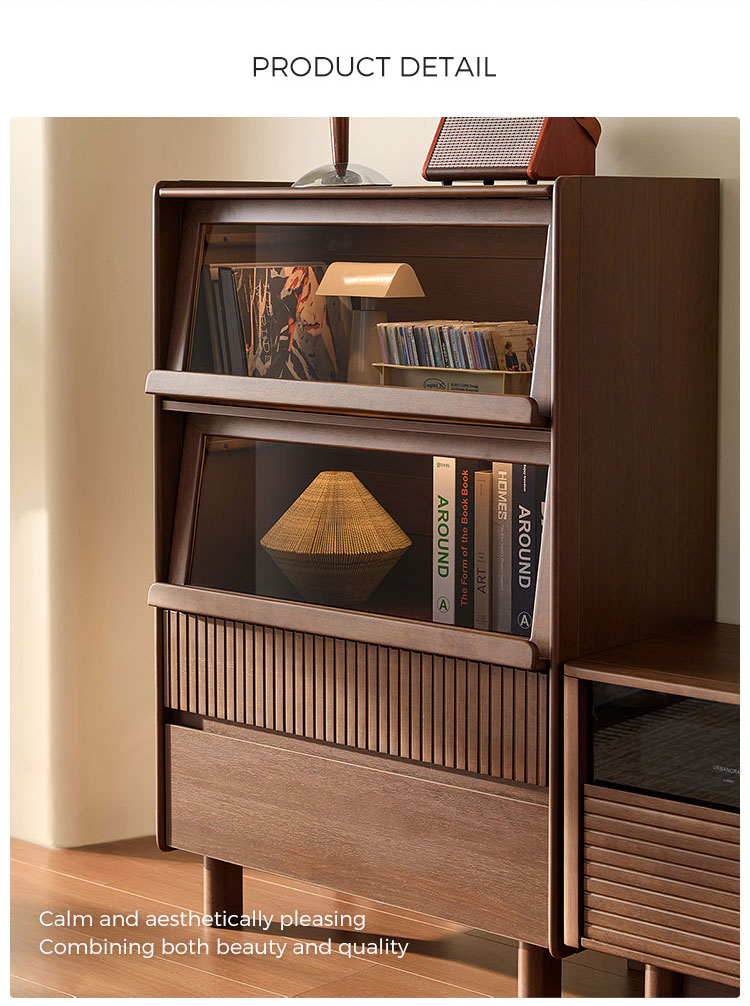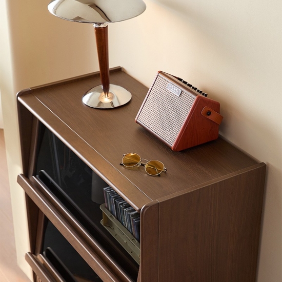 7LINES Lemari Penyimpanan Samping Elegan dari Kayu Walnut untuk Ruang Tamu UY3M-A