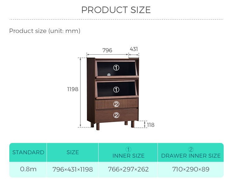 Desain Fungsional: Dirancang untuk keserbagunaan, lemari ini menyediakan ruang penyimpanan tersembunyi yang luas di balik pintu dan laci yang terpasang dengan rapi.