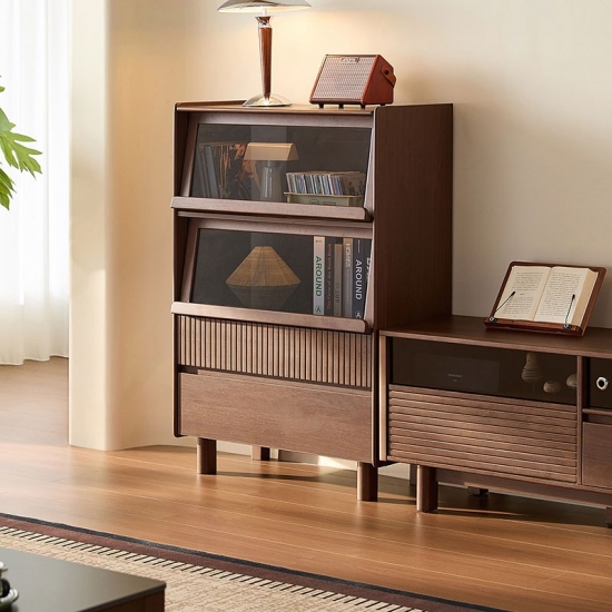 LINES Lemari Penyimpanan Samping Elegan dari Kayu Walnut untuk Ruang Tamu UY3M-A |