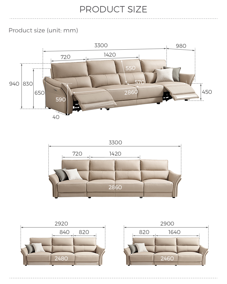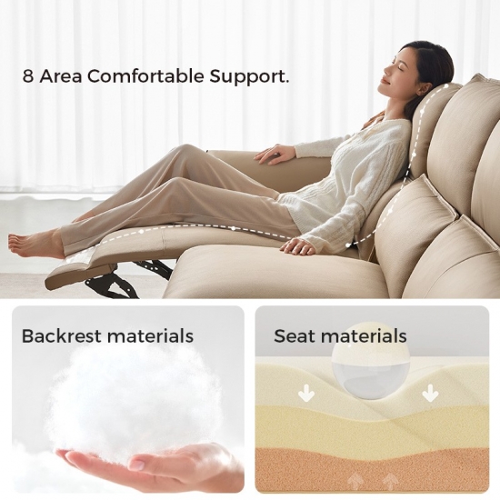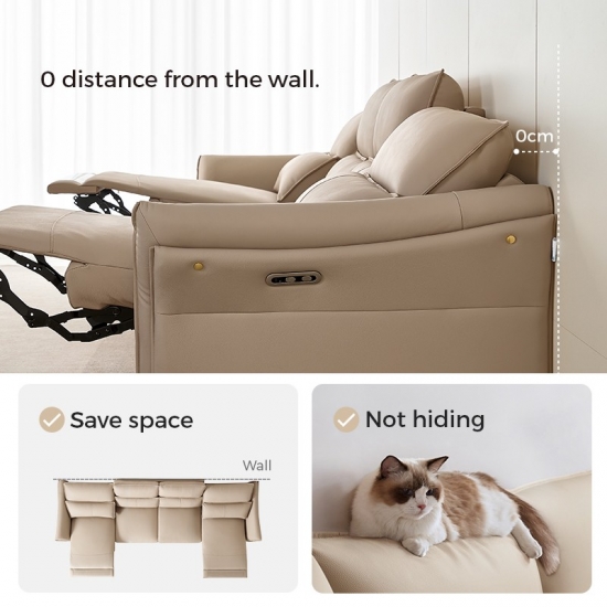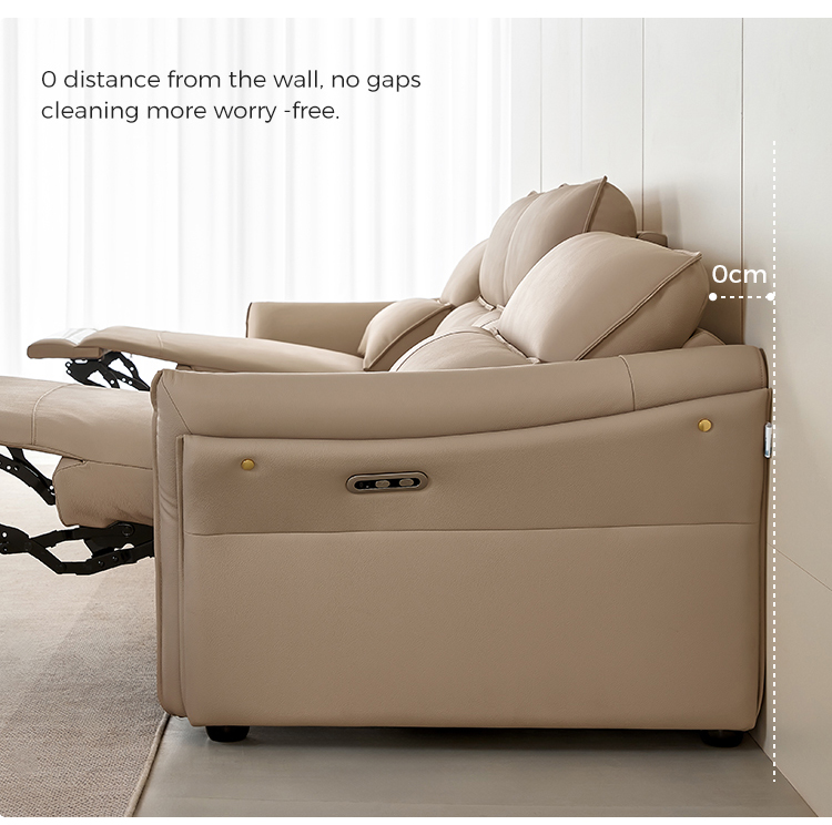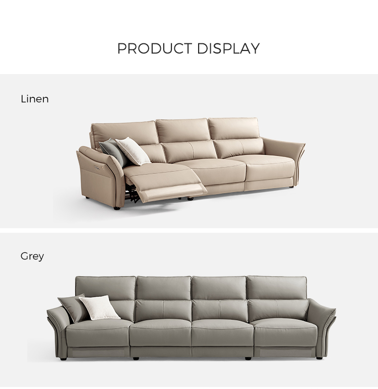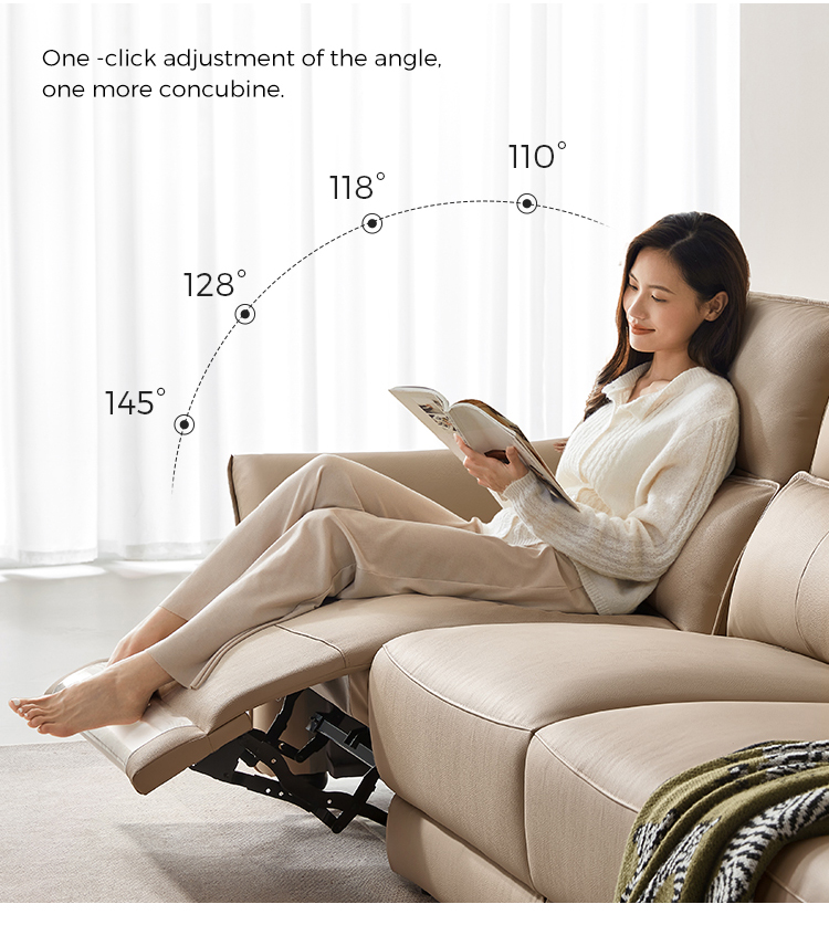 1. Sandaran Kepala dan Penyangga Pinggang yang Dapat Disesuaikan: Sofa kulit elektrik LINSY dilengkapi dengan sandaran kepala bermotor dan penyangga pinggang, yang memungkinkan Anda mengatur sudut sempurna untuk penyangga leher dan punggung.