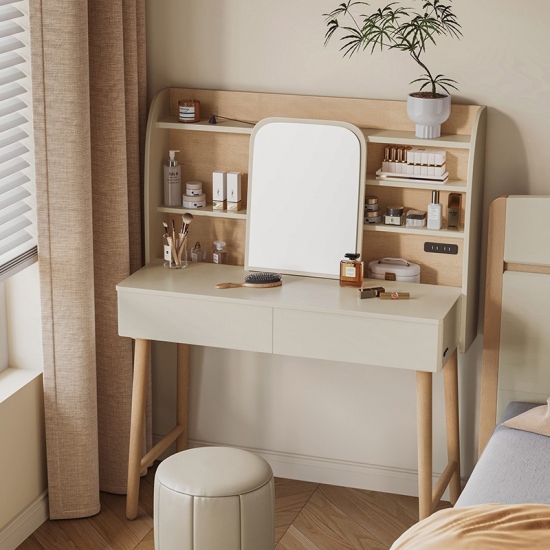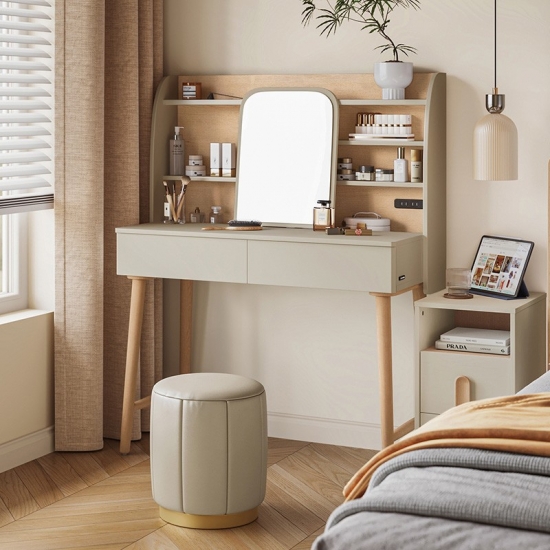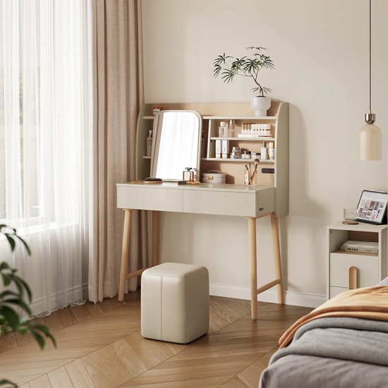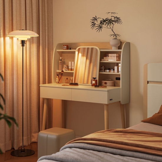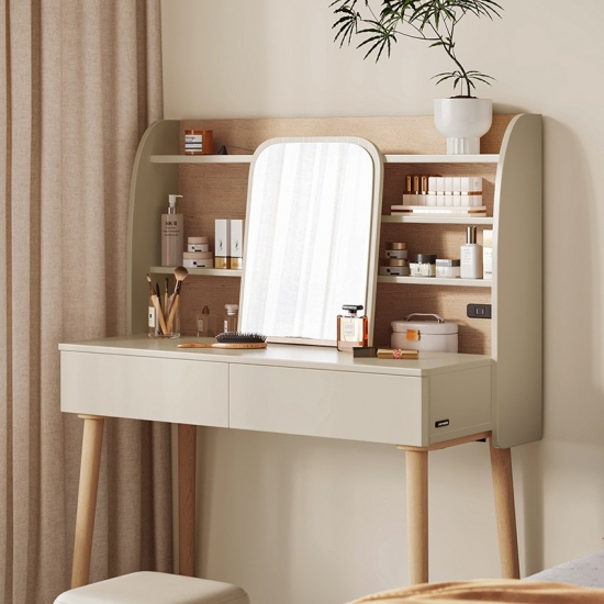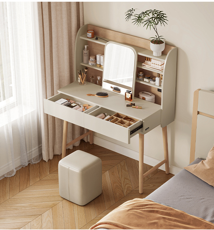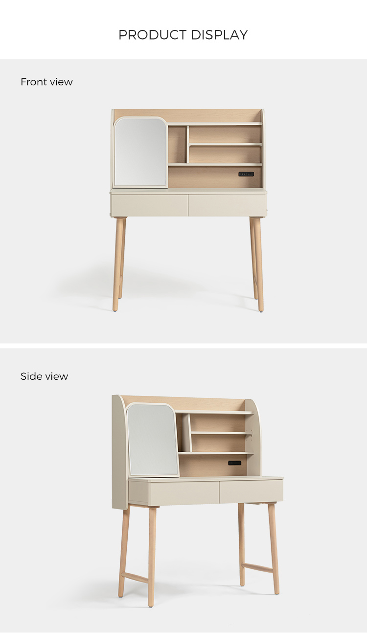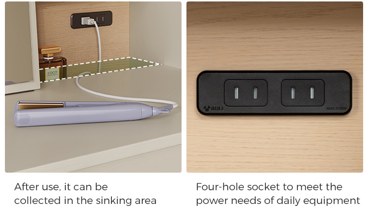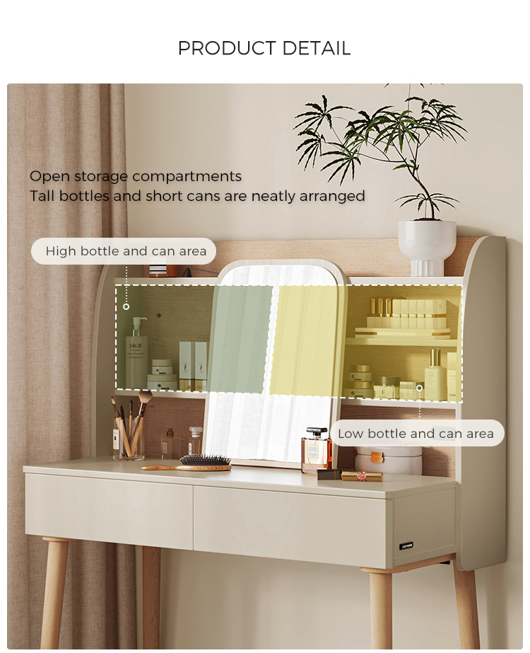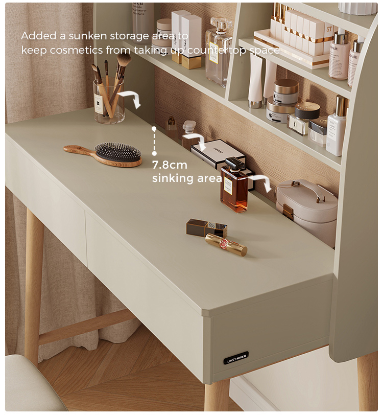 Penyimpanan Terintegrasi: Laci yang dirancang dengan cermat menawarkan penyimpanan praktis dan tersembunyi. Simpan kosmetik, peralatan perawatan rambut, perhiasan, dan perlengkapan penting secara teratur, mudah dijangkau, namun tetap rapi.