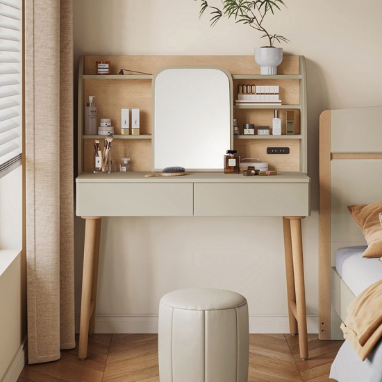 Penempatan Serbaguna: Sempurna sebagai meja rias khusus, lemari rias kompak, atau solusi penyimpanan samping tempat tidur yang elegan.
