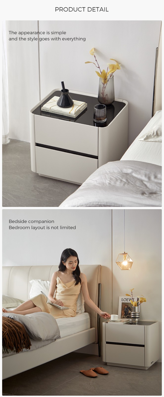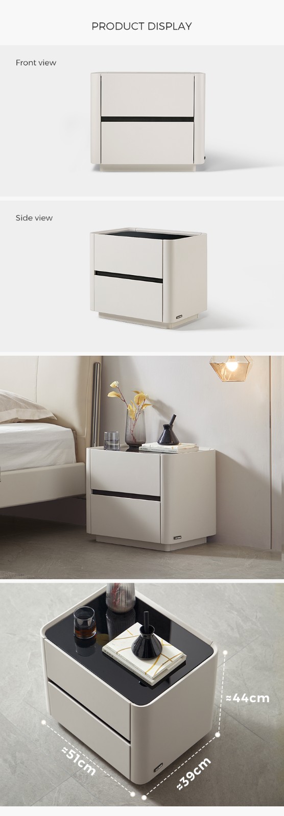 * Meja nakas 2 laci modular menghadirkan fungsi dan gaya ramping di samping tempat tidur Anda