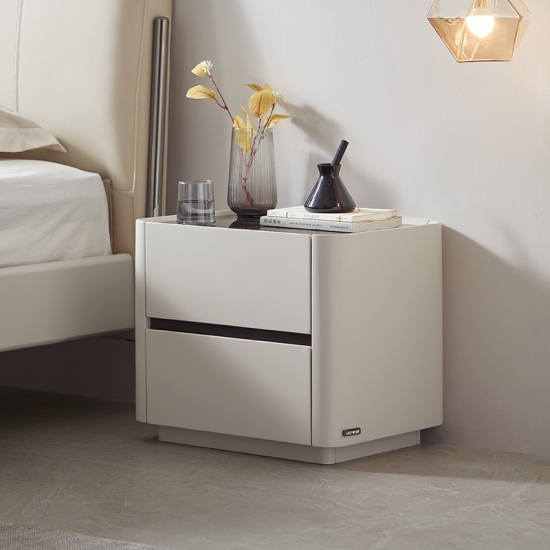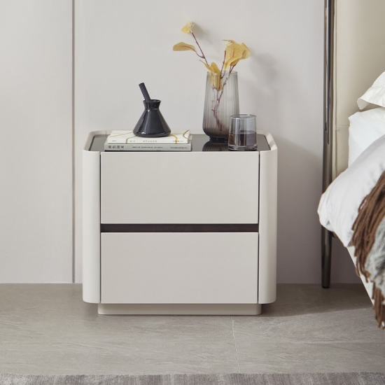 LINSY Meja Samping Tempat Tidur Modern dengan Dua Laci NV1B-B