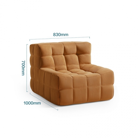 Tingkatkan ruang tamu Anda dengan kursi sofa modular tunggal modern kami, yang dirancang untuk memadukan kecanggihan dan kenyamanan. Karya ini sangat cocok untuk sudut baca yang nyaman, ruang tamu yang apik, atau sebagai kursi aksen di kamar tidur Anda. Ukurannya yang ringkas menjadikannya pilihan tepat untuk ruangan kecil tanpa mengurangi gaya atau fungsinya.