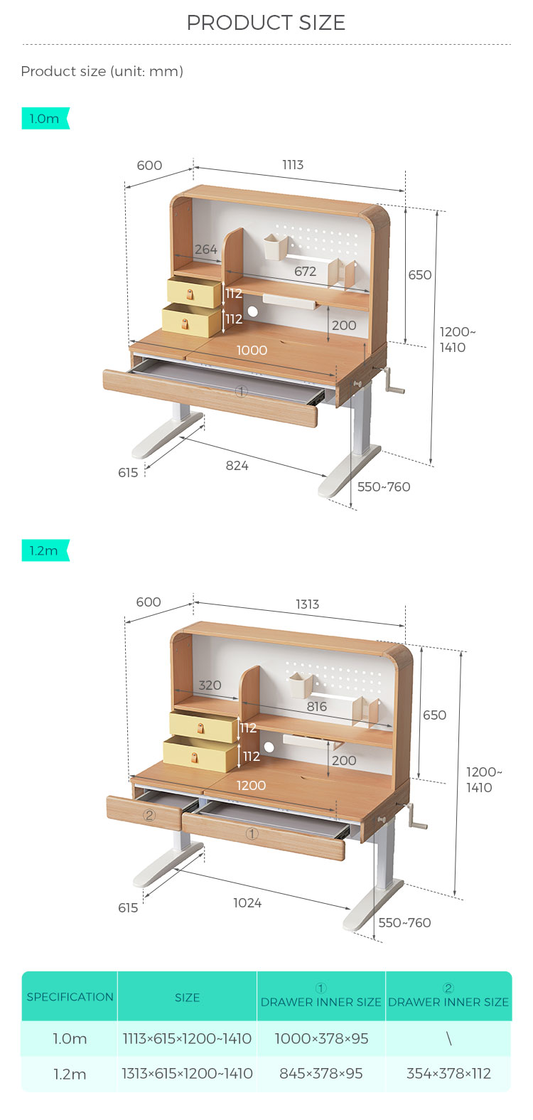 Desain Ergonomis: Ketinggian yang dirancang dengan cermat dan permukaan meja yang luas mendorong postur tubuh yang baik dan menyediakan banyak ruang untuk belajar, menggambar, dan mengerjakan proyek kreatif.
