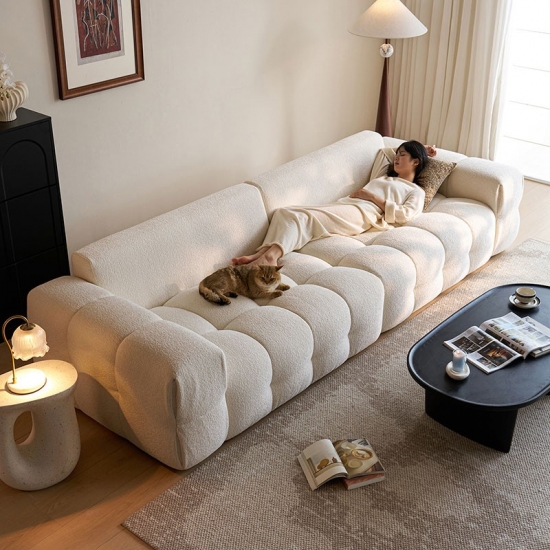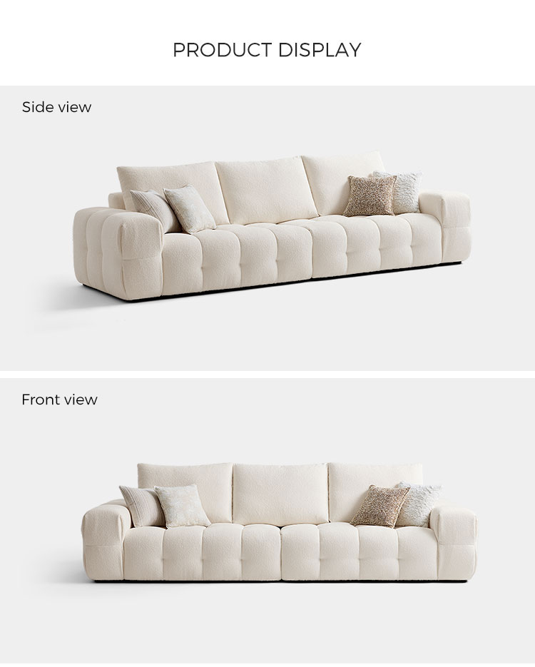 Memperkenalkan pusat perhatian dalam kehidupan modern: sofa kain putih bersih kami. Terinspirasi oleh garis-garis bersih dan keanggunan ritmis bentuk tahu, sofa ini memadukan desain minimalis dengan kenyamanan yang dalam dan mengundang. Ini bukan sekadar perabot; ini adalah pernyataan gaya kontemporer yang tenang.