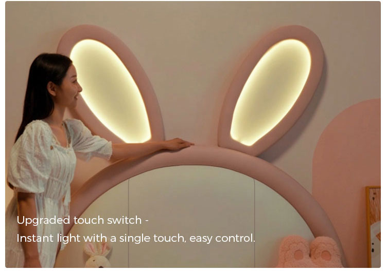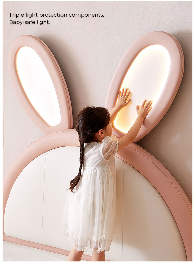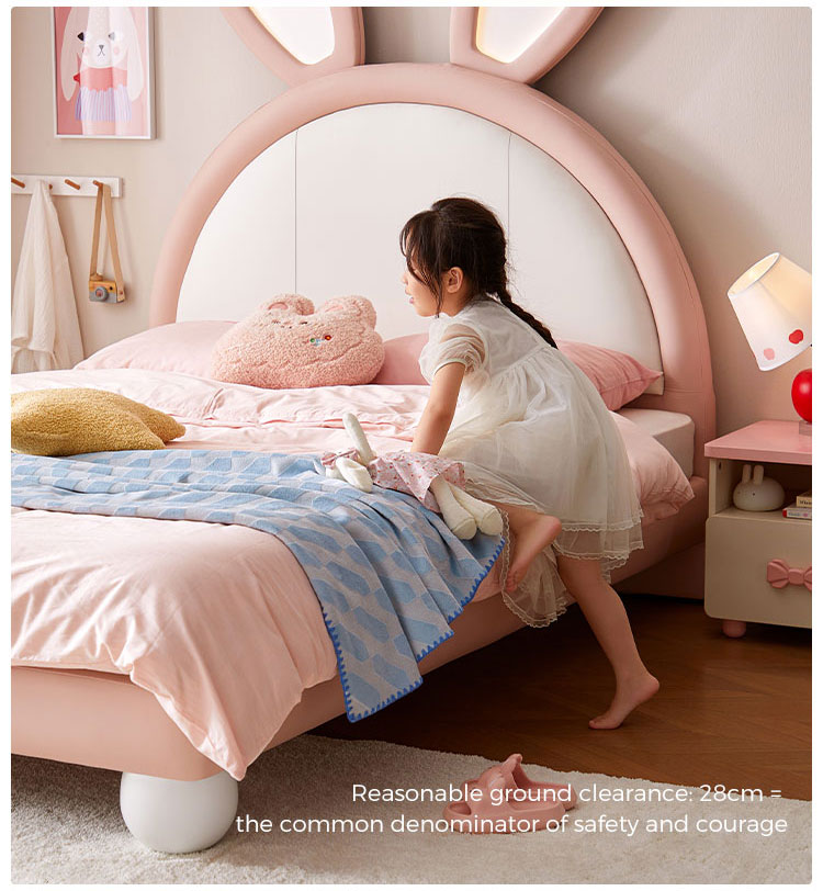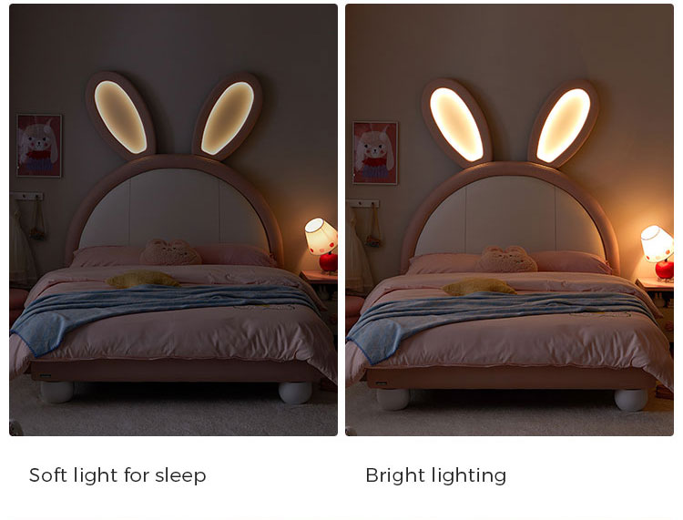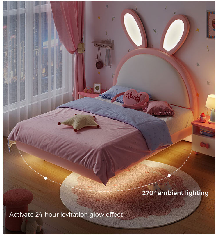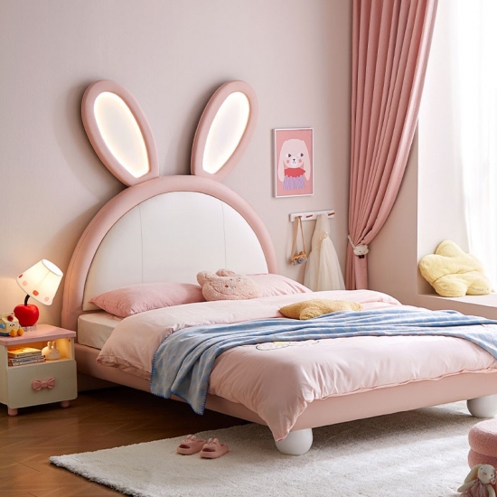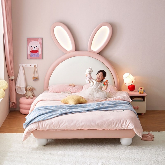 7Tempat Tidur Kelinci LINSY Pink dengan Telinga Bercahaya yang Dapat Disesuaikan dengan Kulit PC131-A