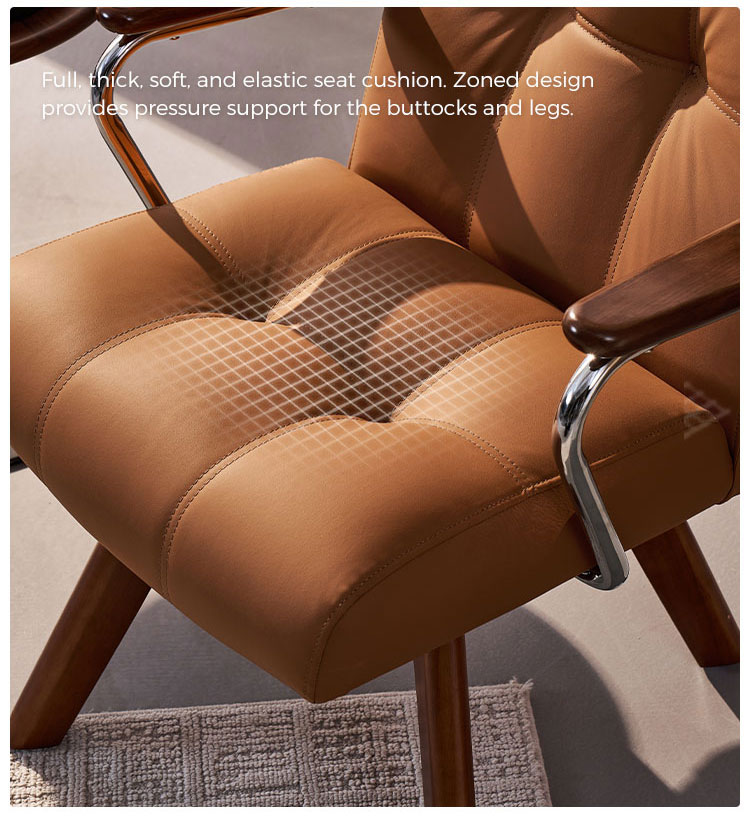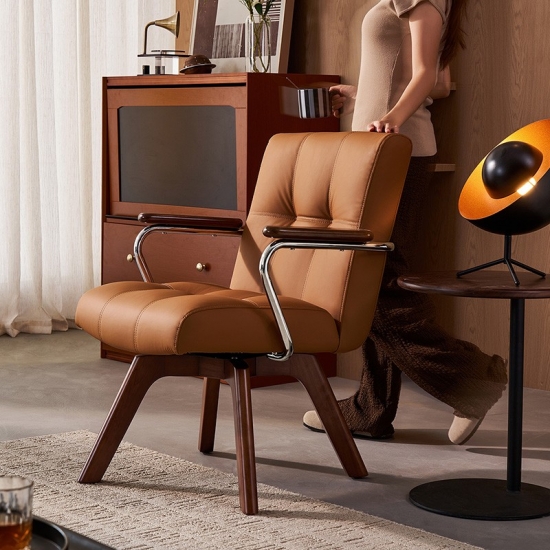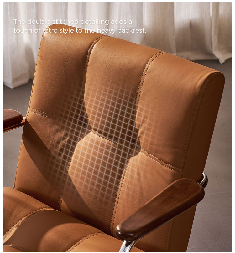Dirancang untuk kenyamanan dan gaya, kursi kantor rumah kami memadukan pelapis kulit imitasi premium dengan alas kayu solid yang kokoh. Sandaran tangan besi yang kokoh memberikan dukungan sempurna selama jam kerja yang panjang, menjadikan kursi ini pusat perhatian yang tahan lama dan elegan untuk kantor rumah Anda.