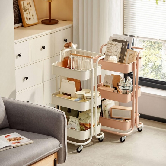 Simpan semua jenis barang di dapur, kantor, kamar mandi, dan lainnya dengan keranjang utilitas tiga tingkat dari LINSY. Roda pengunci di dasar keranjang penyimpanan berjenjang ini memberikan akses dan transportasi yang mudah, sehingga ideal untuk menyimpan barang-barang yang sering digunakan, dan mudah untuk menukar isinya atau memindahkan seluruh keranjang ke ruangan lain.