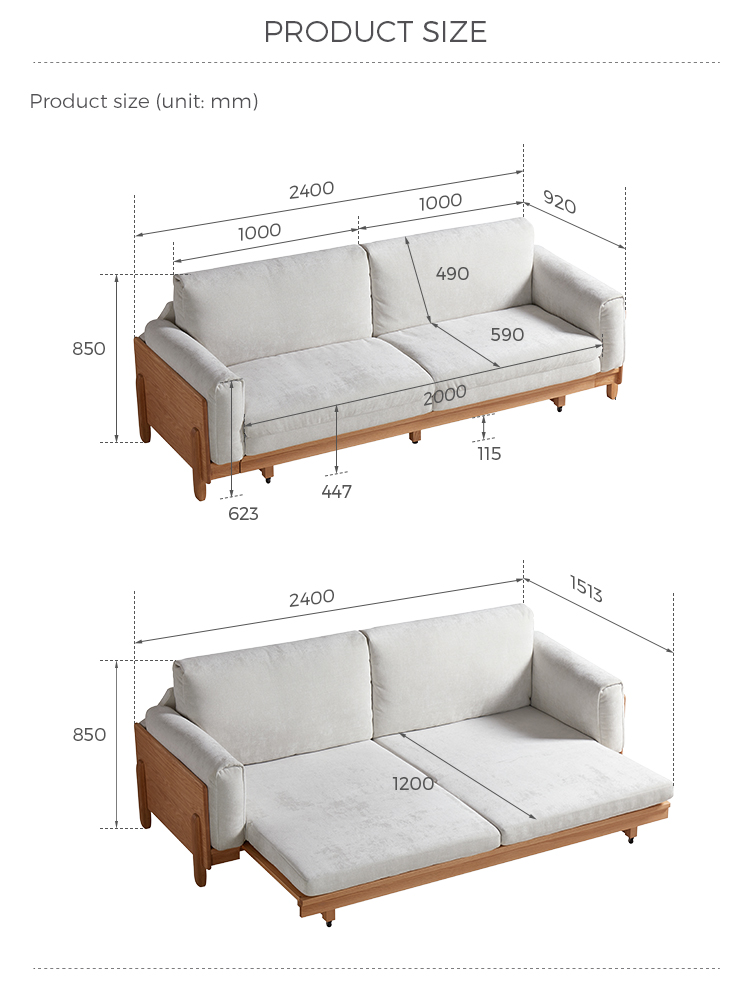 *Desain Fungsi Ganda: Mekanisme konversi satu klik yang dipatenkan beralih antara sofa dan tempat tidur ukuran penuh dalam hitungan detik