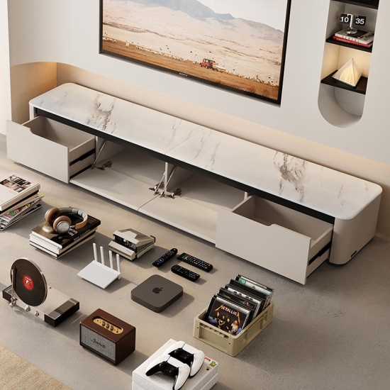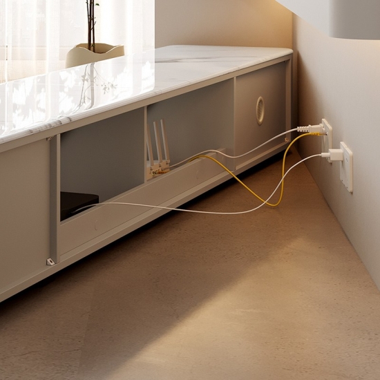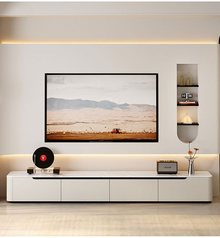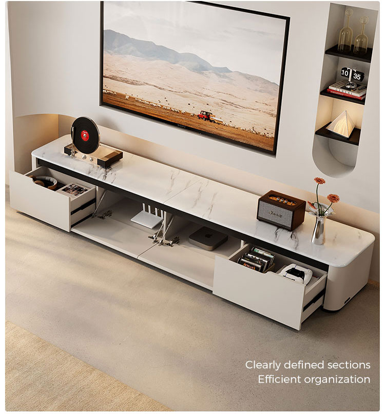 7LINES Rak TV Putih Bergaya dengan Penyimpanan Luas RI4M-E