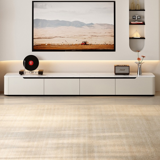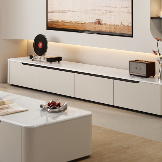 LINES Rak TV Putih Bergaya dengan Penyimpanan Luas RI4M-E |