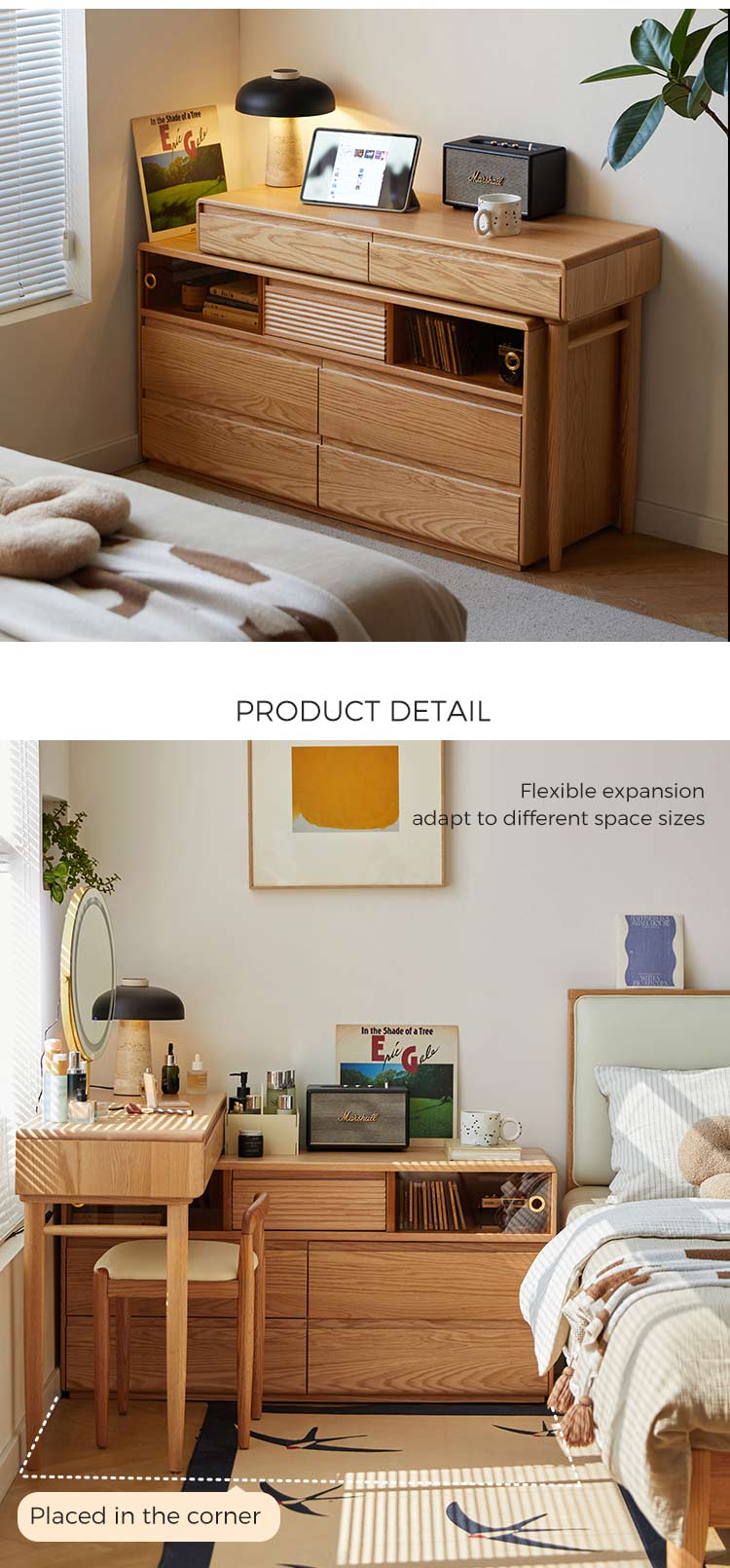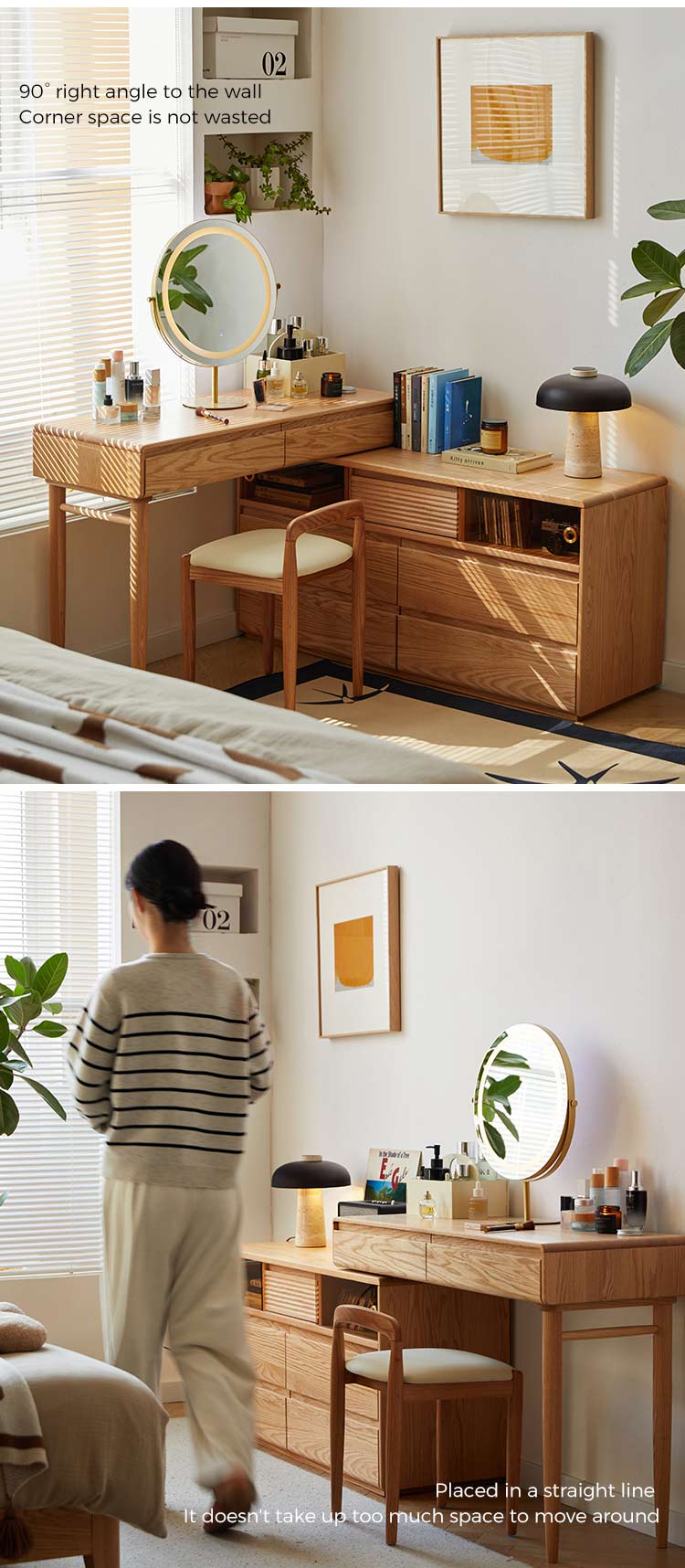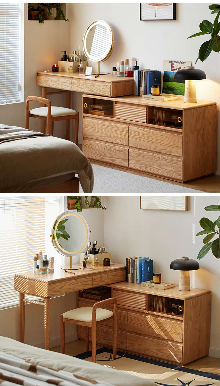Meja rias kayu serbaguna dan hemat tempat ini memiliki desain inovatif yang dapat diperpanjang. Dibuat dari kayu solid berkualitas tinggi dengan finishing halus alami dan bernoda. Perabotan ini memadukan fungsionalitas dengan keanggunan klasik. Ini akan menjadi pilihan yang sempurna untuk kamar tidur.