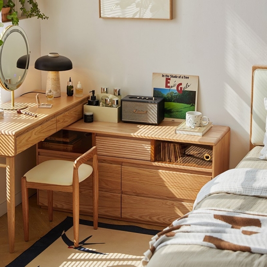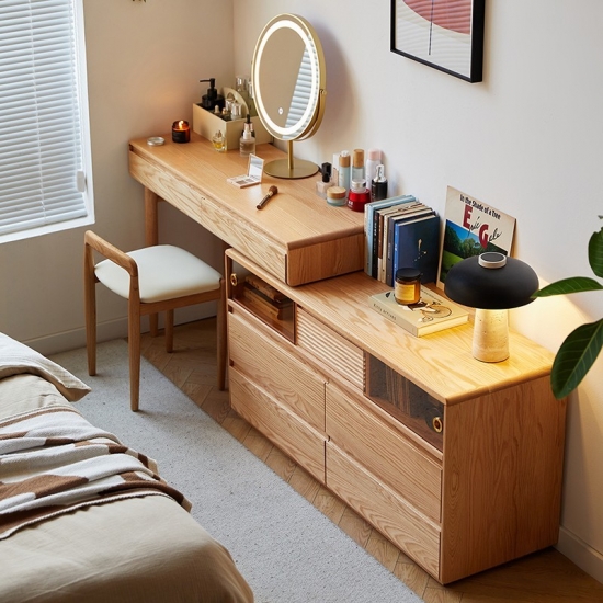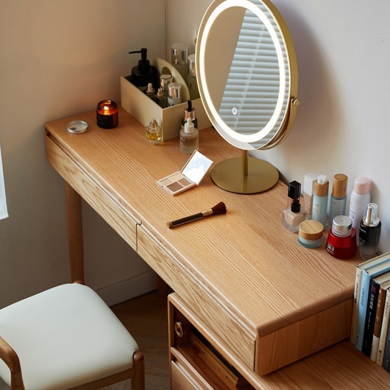Beberapa kompartemen penyimpanan – laci, rak, atau organizer tersembunyi untuk kosmetik/perhiasan