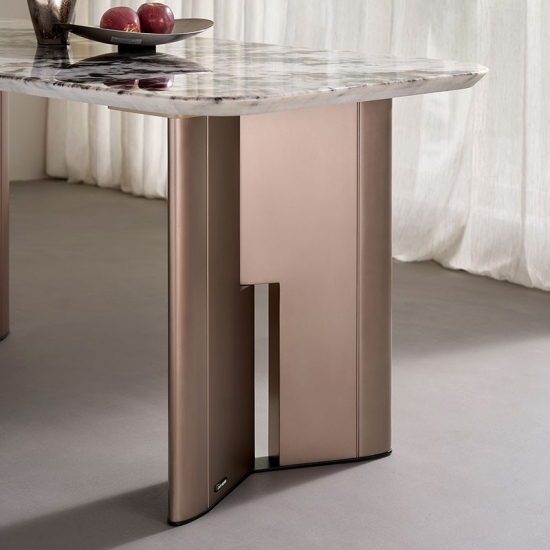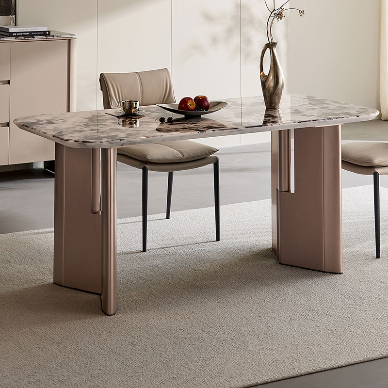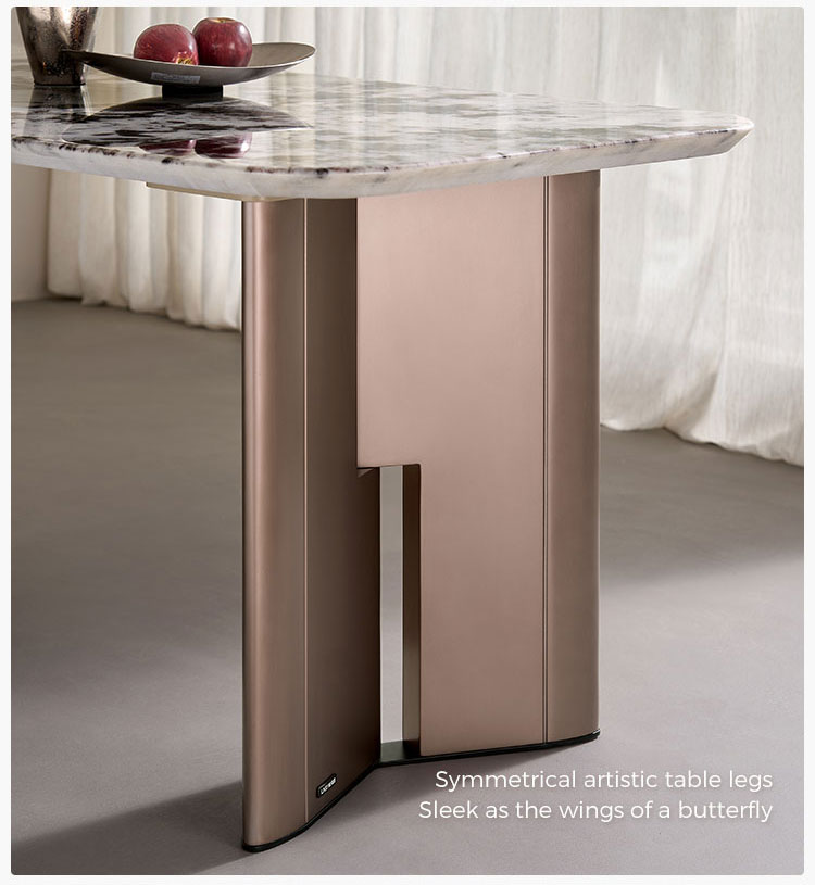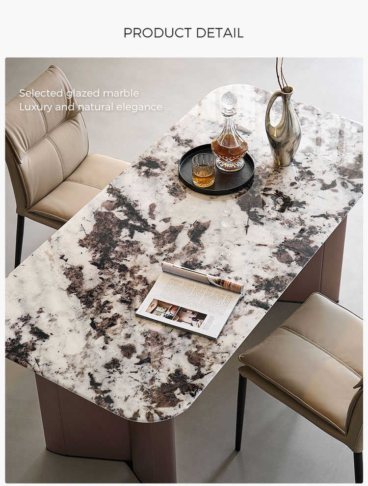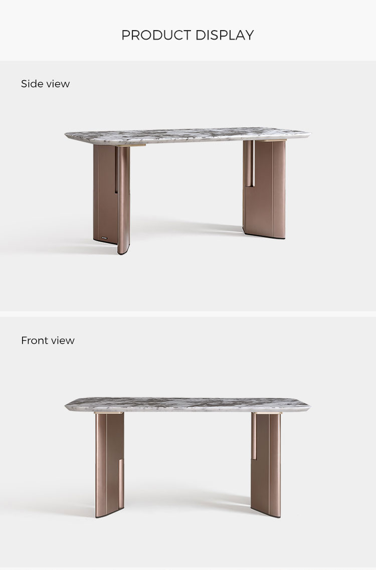 Tingkatkan pengalaman bersantap Anda dengan Meja Makan Marmer Modern LINSY. Dibuat secara profesional dengan bagian atas persegi panjang ramping yang terbuat dari satu lempengan marmer alami, meja ini menjadi pusat perhatian yang memukau untuk setiap rumah kontemporer. Setiap bagiannya memiliki urat organik yang unik, memastikan meja Anda menjadi istimewa.