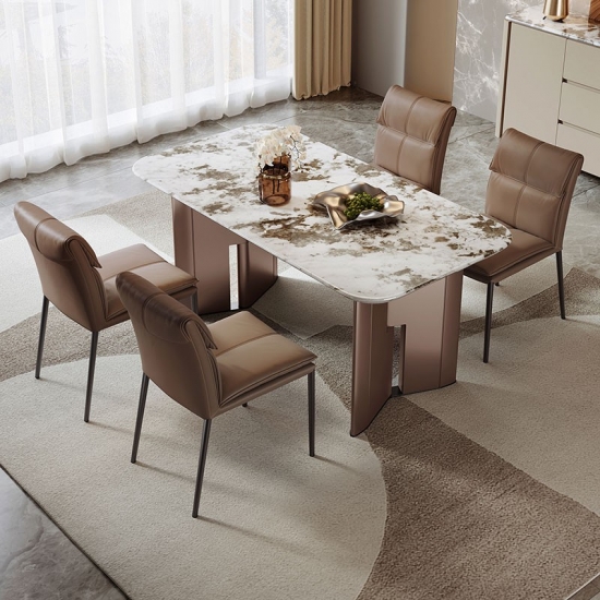 7Meja Makan Dapur Desain Modern dengan Atasan Marmer VD2R-B