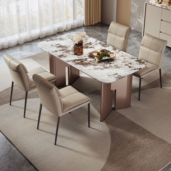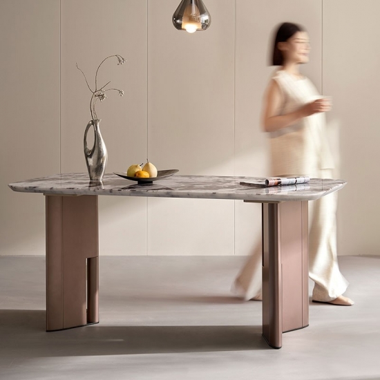 Meja Makan Rangka Kayu Persegi Panjang Modern LINSY dengan Atasan Marmer RG1R-A Baca lebih banyak