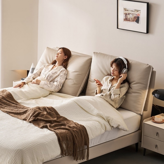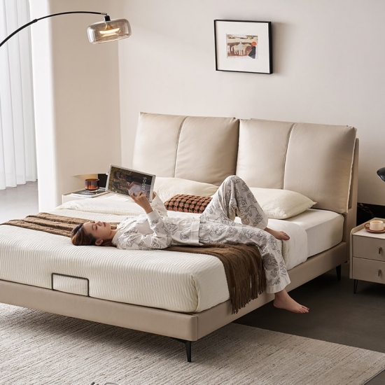 7Ranjang Kayu Kulit Warna Beige Elegan Modern PC589-A
