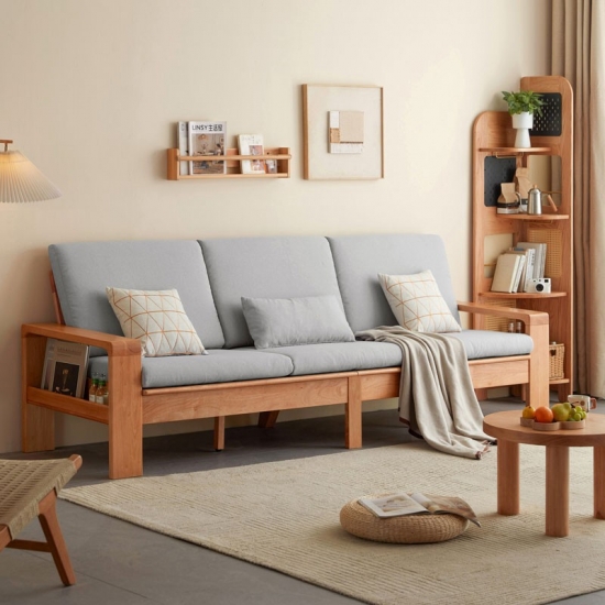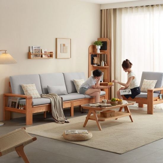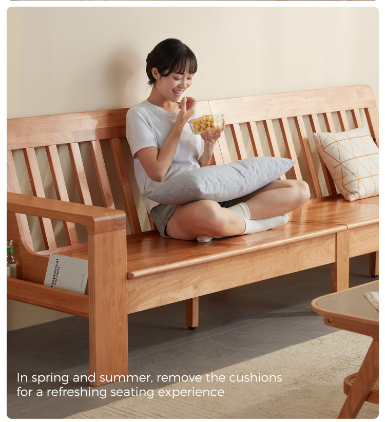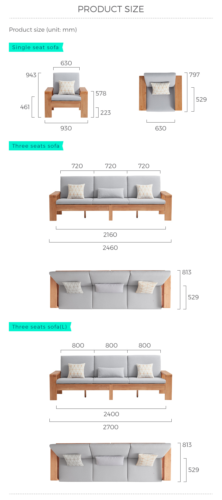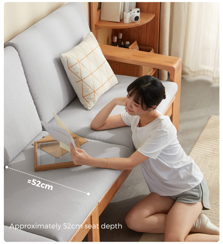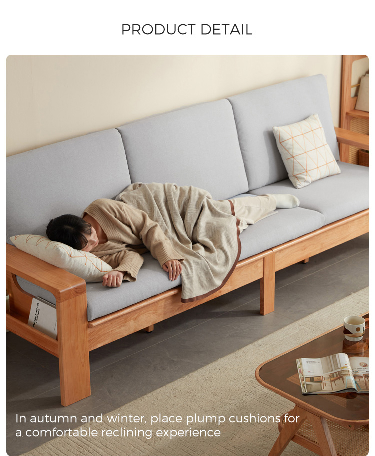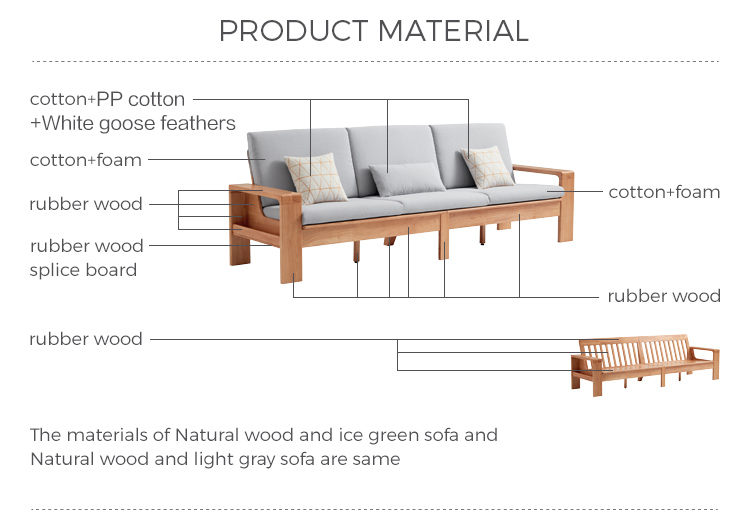 Materi untuk sofa | Bingkai: kayu solid + kayu lapis Busa: polyester beludru + busa boneka + busa berkualitas tinggi Kaki: kayu kayu putih |