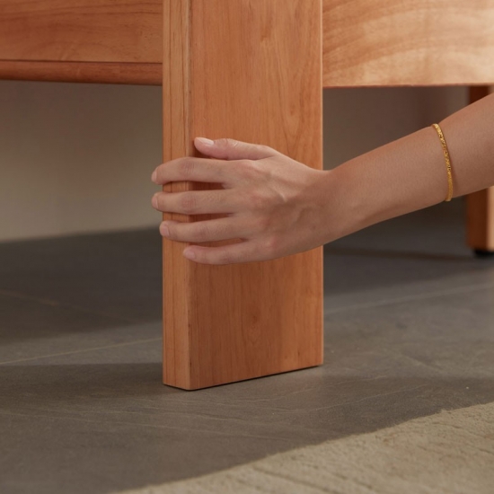 *Kayu dibiarkan alami, bernoda, atau dicat agar sesuai dengan berbagai gaya interior Hasil akhir yang umum termasuk penampilan matte, mengkilap, atau tertekan