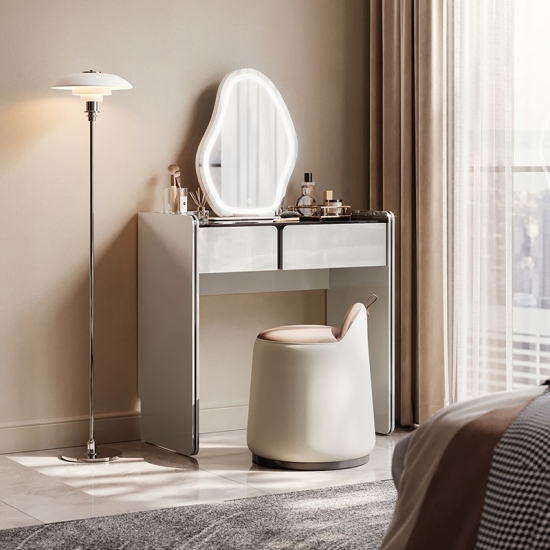 7Meja Rias Kamar Tidur Warna Abu-abu Muda Modern dengan Cermin NV3C-C