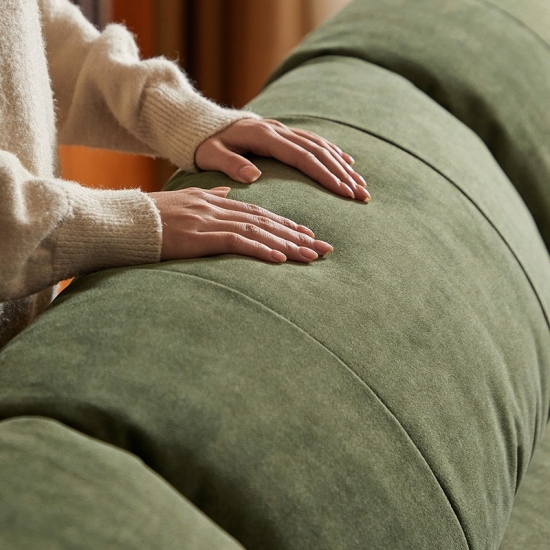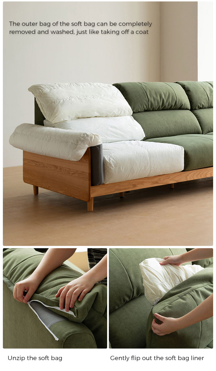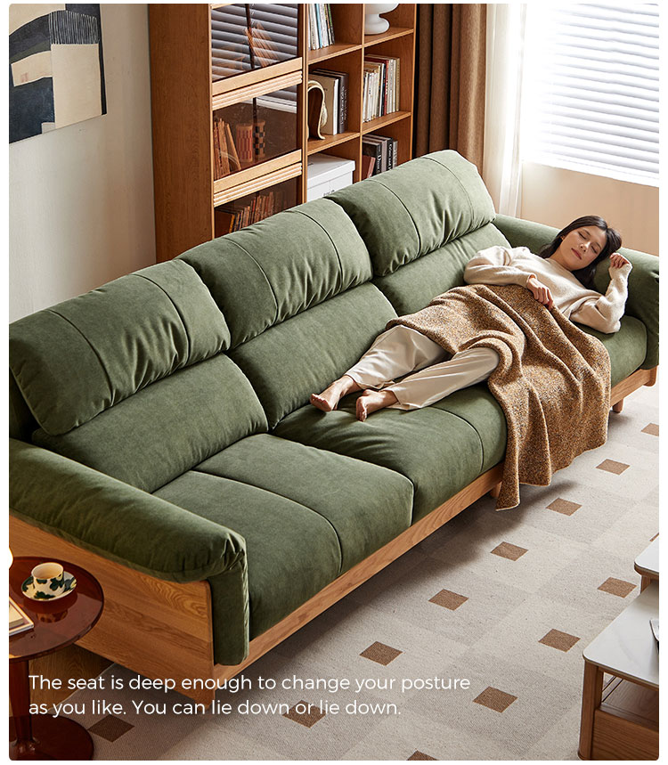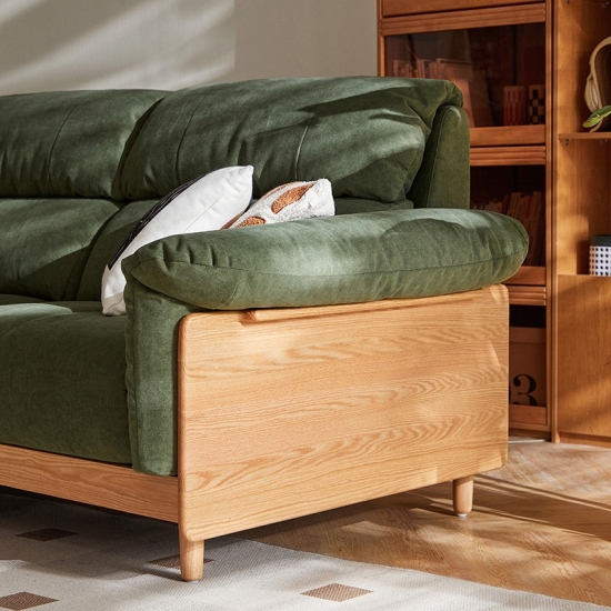 Dibuat tangan dengan kayu ash solid yang bersumber secara berkelanjutan, sofa ini memadukan kehangatan organik dengan desain kontemporer. Dilapisi kain hijau lumut yang mewah, sofa ini menciptakan titik fokus yang tenang untuk ruang tamu yang ramah lingkungan.