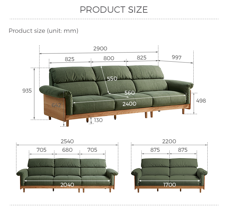 7Sofa Kain Hijau Mint dengan Bingkai Kayu Alami Modern TD2K-A