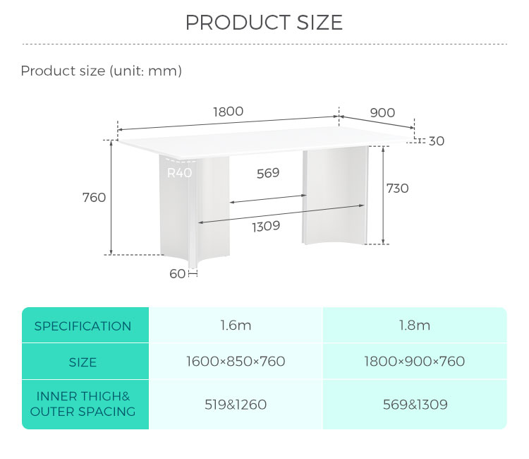 Pilihan Ukuran Serbaguna: Tersedia dalam dua panjang (1,6m dan 1,8m) agar sesuai dengan ruang dan kebutuhan tempat duduk Anda (6-8 orang).