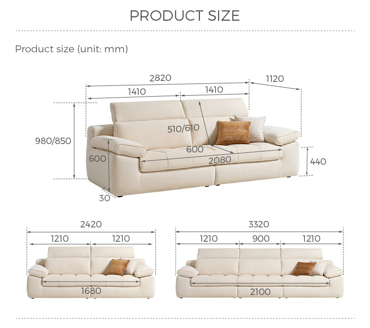 | Nama Produk | Sofa Modern Kain Linen Putih dengan Rangka Dalam Kayu Solid BS813-A |