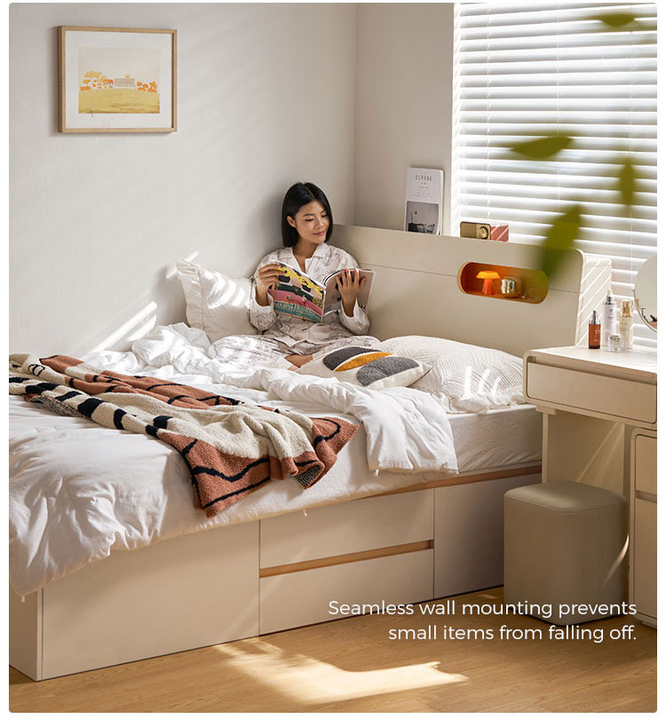 7Ranjang Platform Penyimpanan Putih Modern: Desain Ramping, Penyimpanan Cerdas UD12A-A