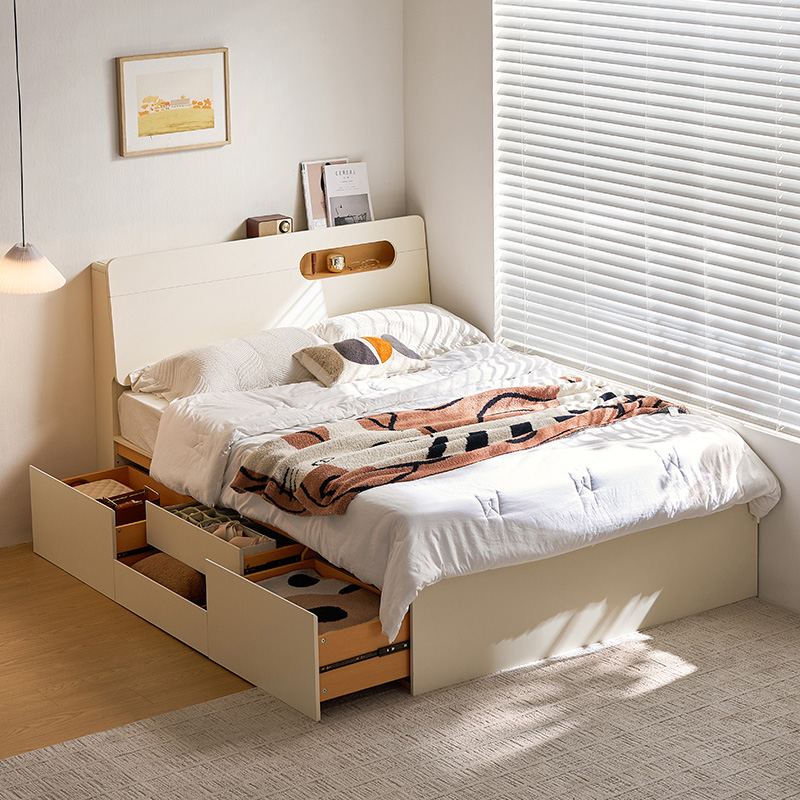 Solusi Penyimpanan Terintegrasi: Dilengkapi dengan laci tarik atau kompartemen angkat yang luas di sepanjang kedua sisinya, menyediakan ruang penyimpanan tersembunyi yang cukup untuk perlengkapan tidur, pakaian musiman, atau barang-barang pribadi tanpa mengurangi ruang lantai.