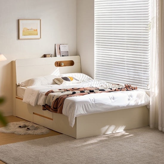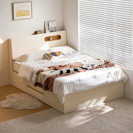 Ranjang Platform Penyimpanan Putih Modern: Desain Ramping, Penyimpanan Cerdas UD12A-A |