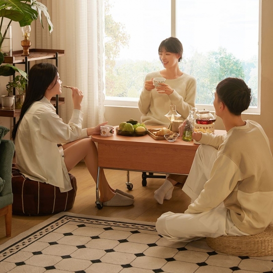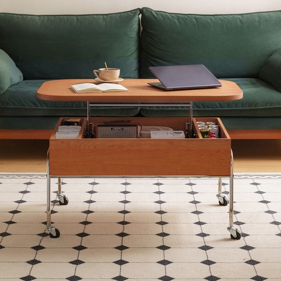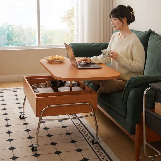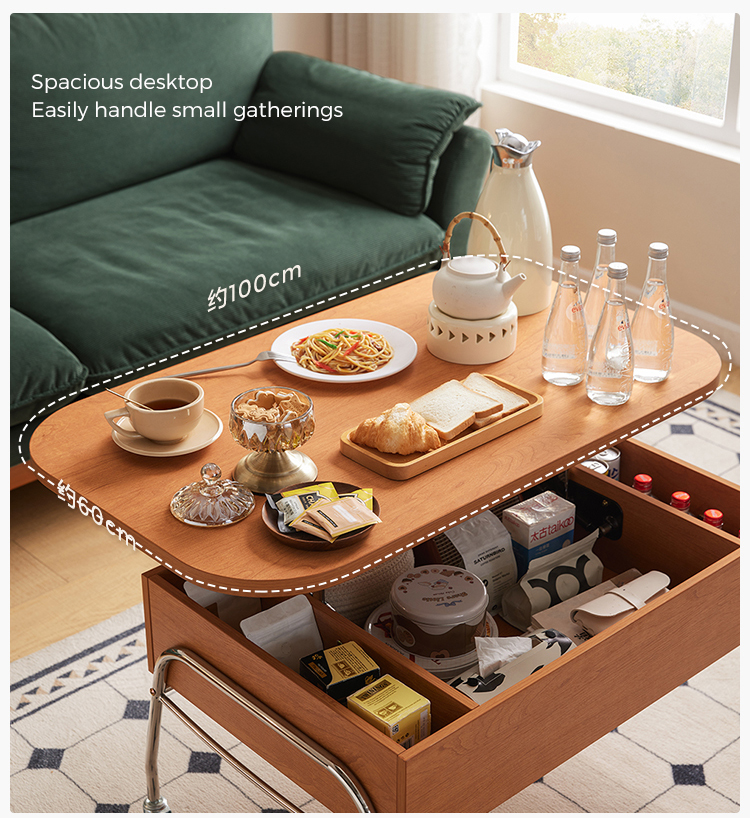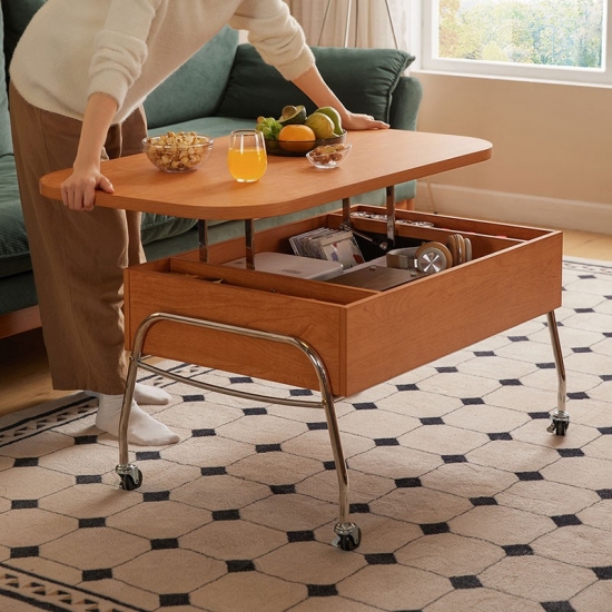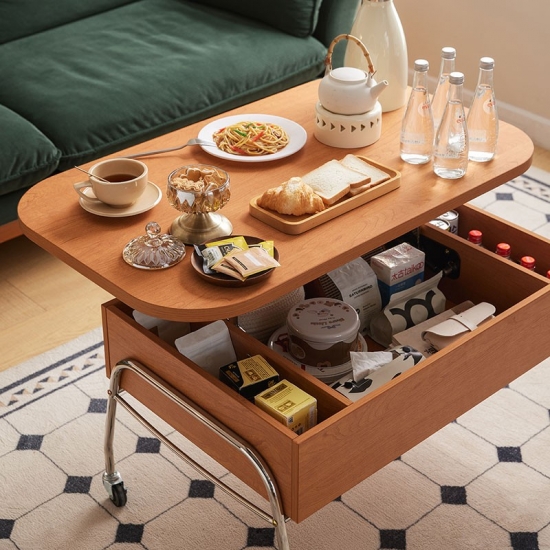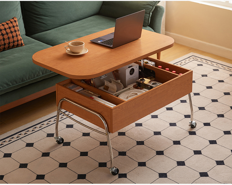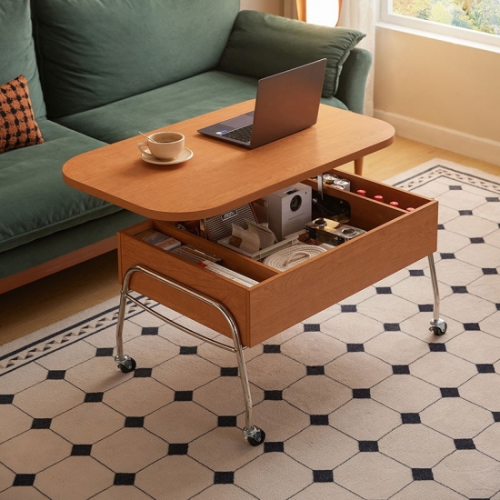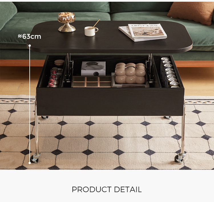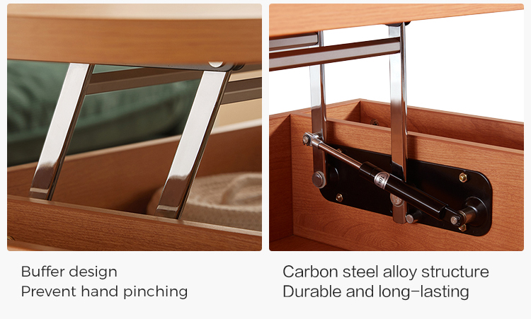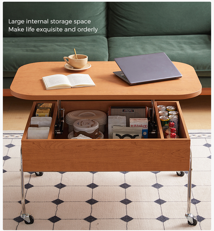 *Fungsionalitas: Mekanisme lift-top halus dan tahan lama, memungkinkan penyesuaian mudah antara meja kopi rendah dan permukaan yang terangkat untuk bersantap atau bekerja