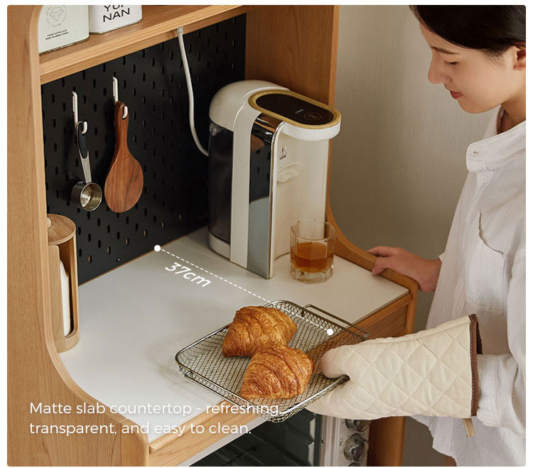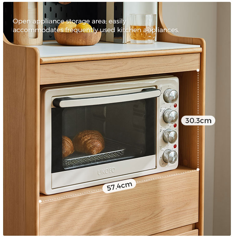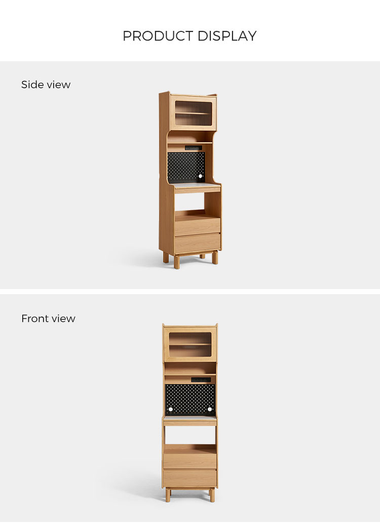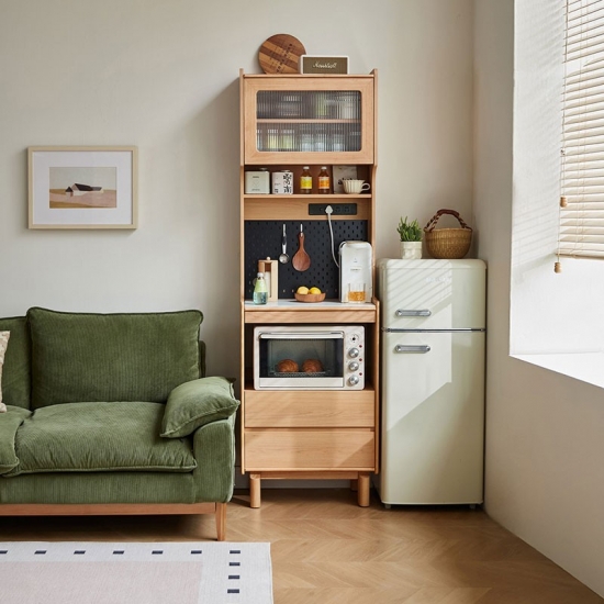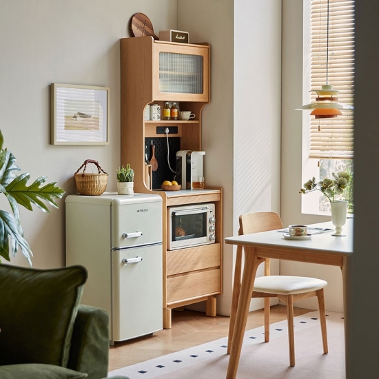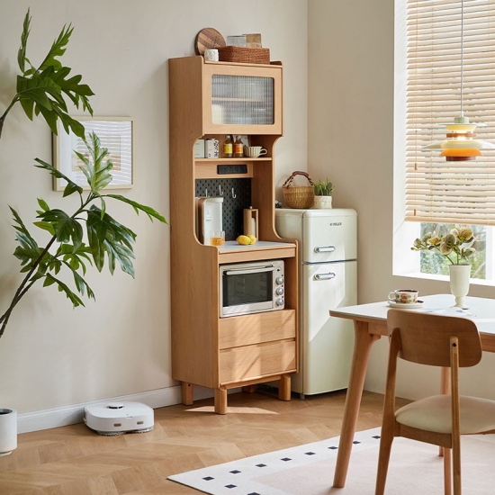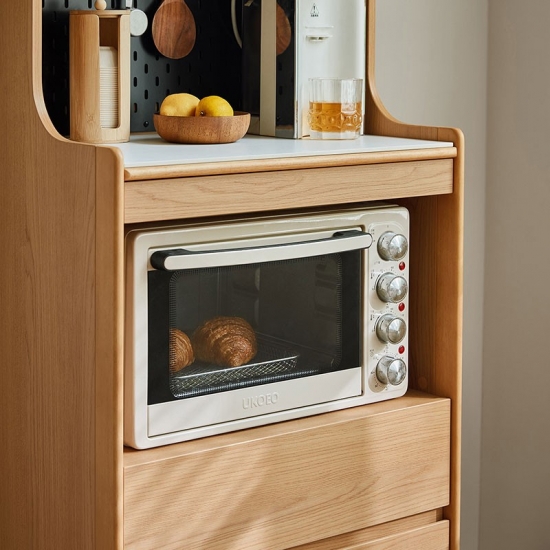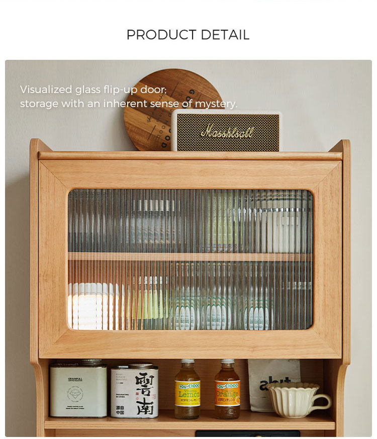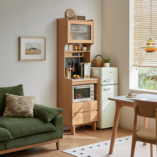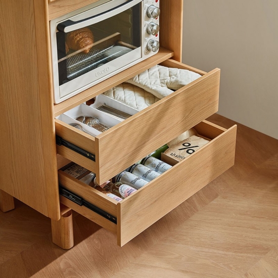 Solusi Penyimpanan Praktis: Di bagian dalam, rak atau laci yang tertata rapi menawarkan banyak ruang untuk peralatan makan, seprai, dan perlengkapan makan, menjaga ruang Anda tetap rapi dan bebas dari kekacauan.