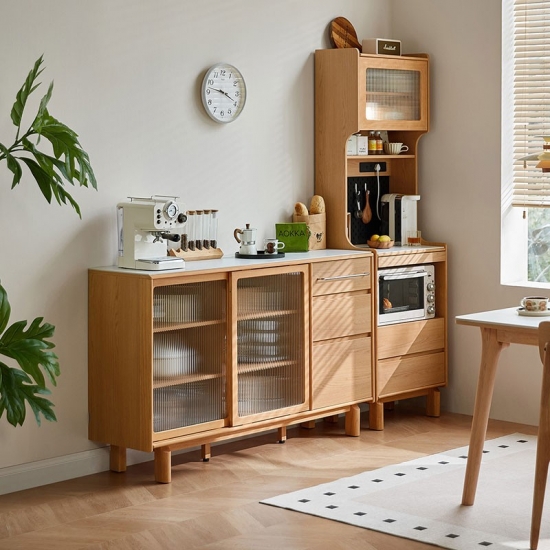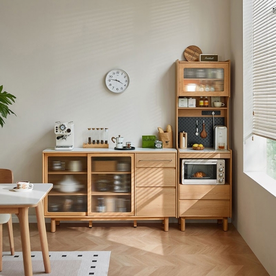 Desain Rangka Ramping yang Ramping: Menampilkan tepi ramping dan profil kompak, bufet ini menghemat ruang sekaligus menambahkan gaya yang elegan—ideal untuk ruang makan berukuran kecil hingga sedang dan area terbuka.