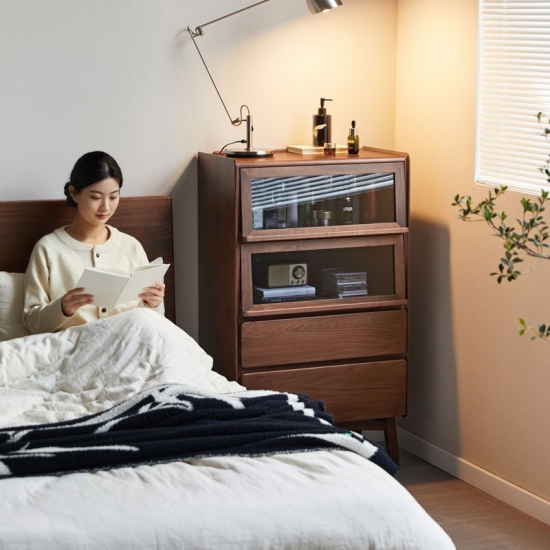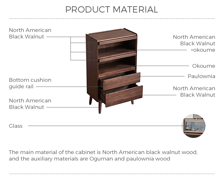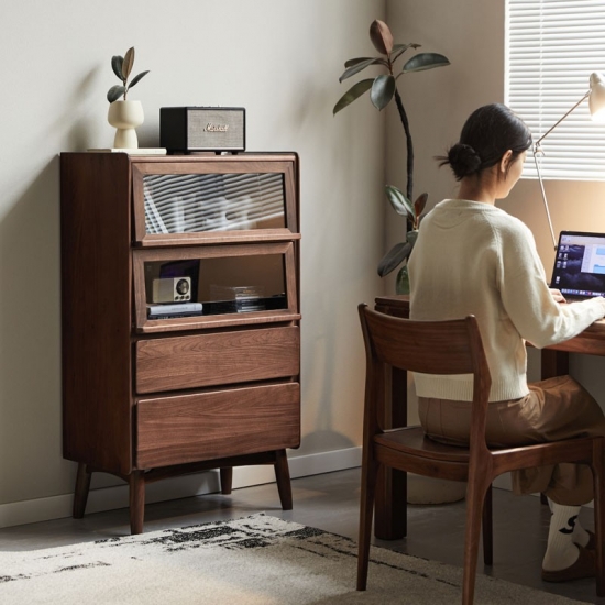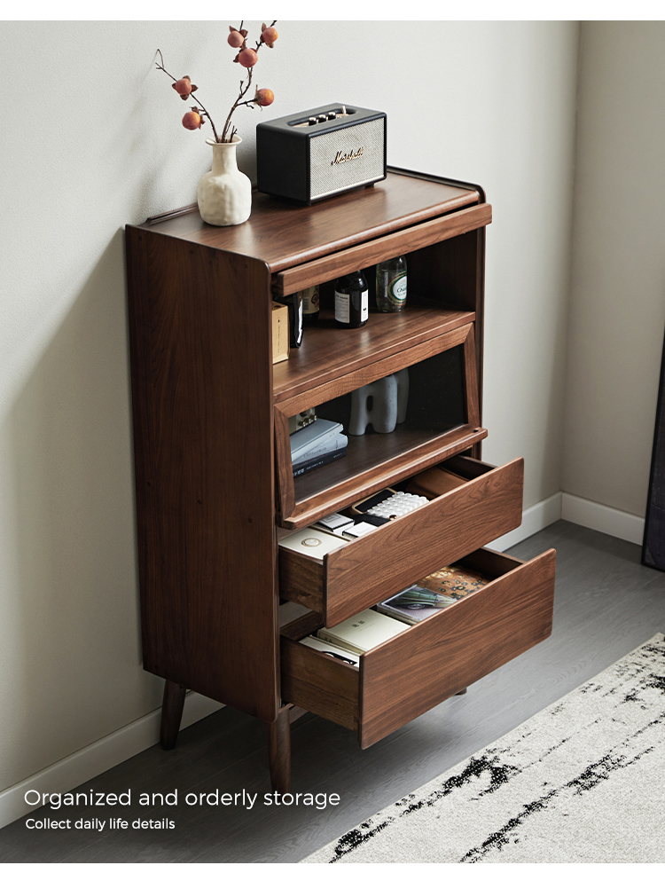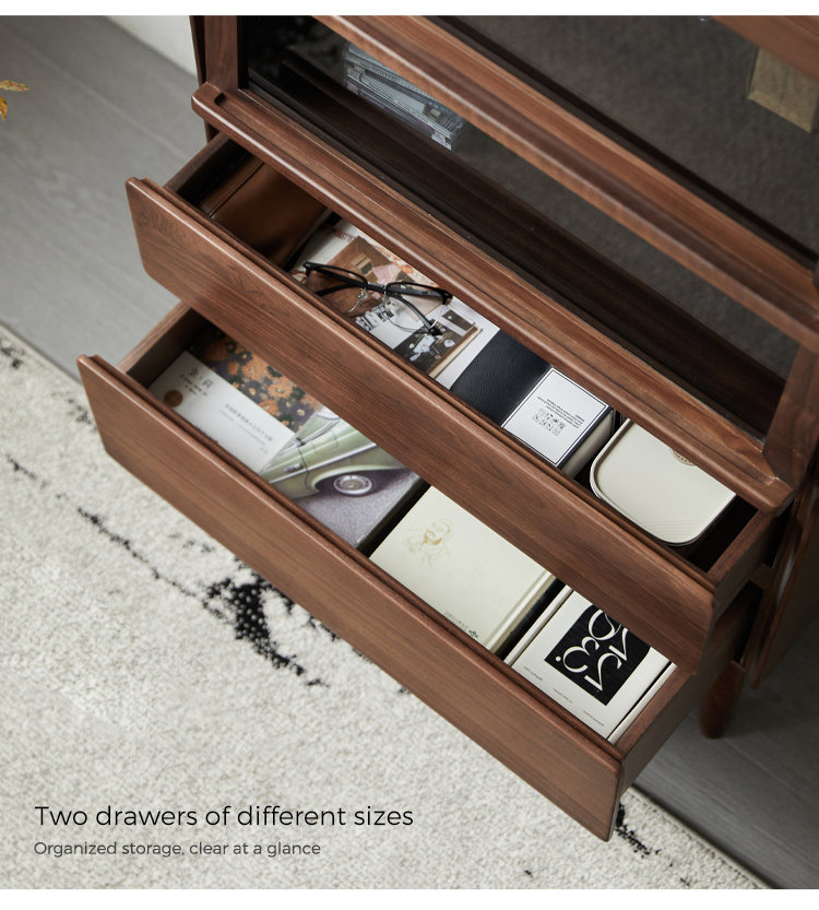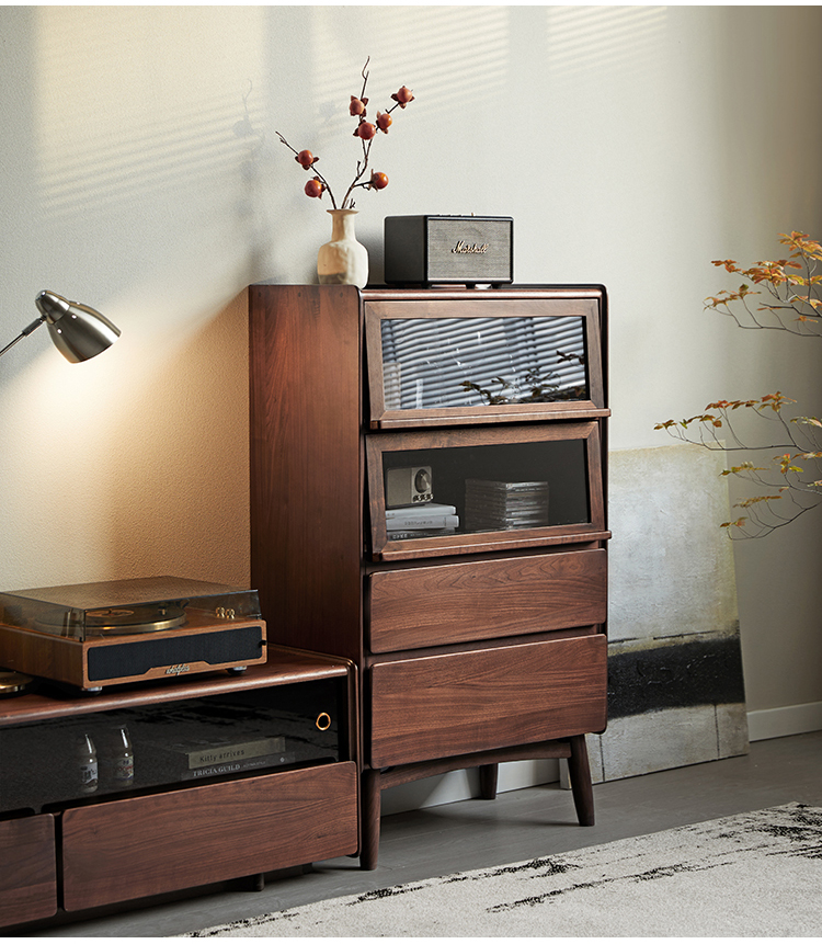 Neo China Walnut Color Cabinet Ruang Tamu Dada dengan Laci LS187E2-B