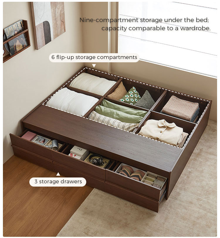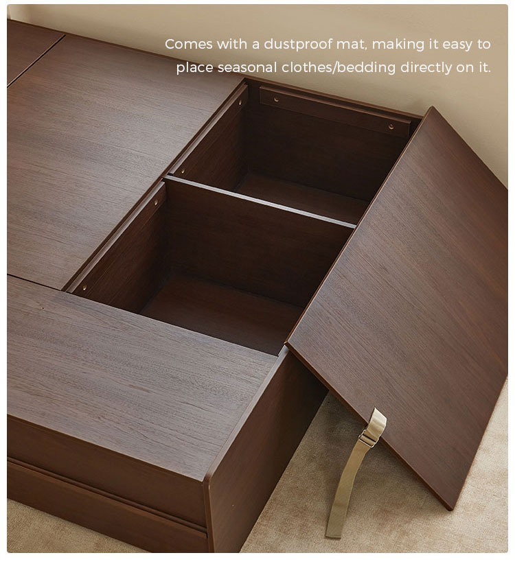 Pilihan Penyimpanan yang Luas: Termasuk laci bawaan atau alas penyimpanan yang bisa diangkat untuk memaksimalkan penataan kamar tidur.