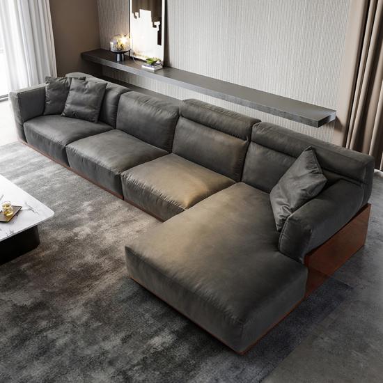 7Gaya Nordic Besar Apartemen Kombinasi Set Kain Cahaya Mewah Sofa Ruang Teknologi Kain Modern Sectional Sofa S041
