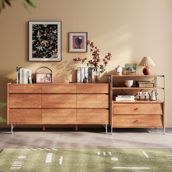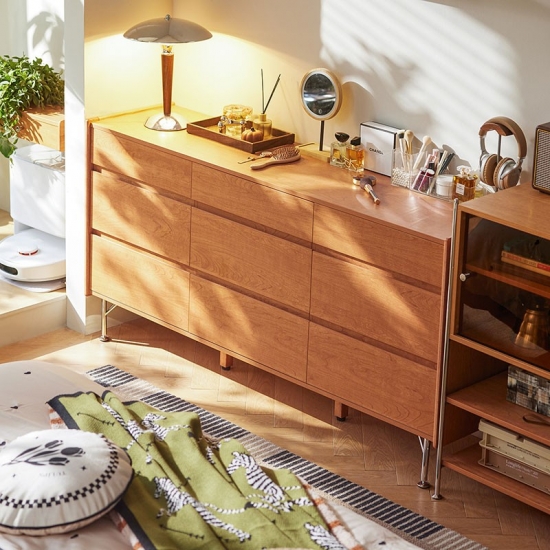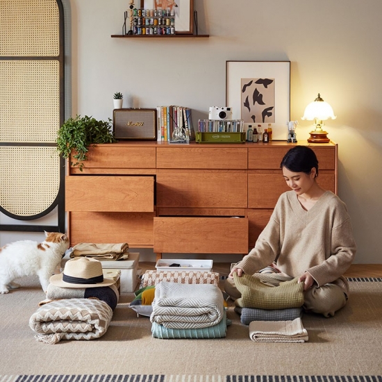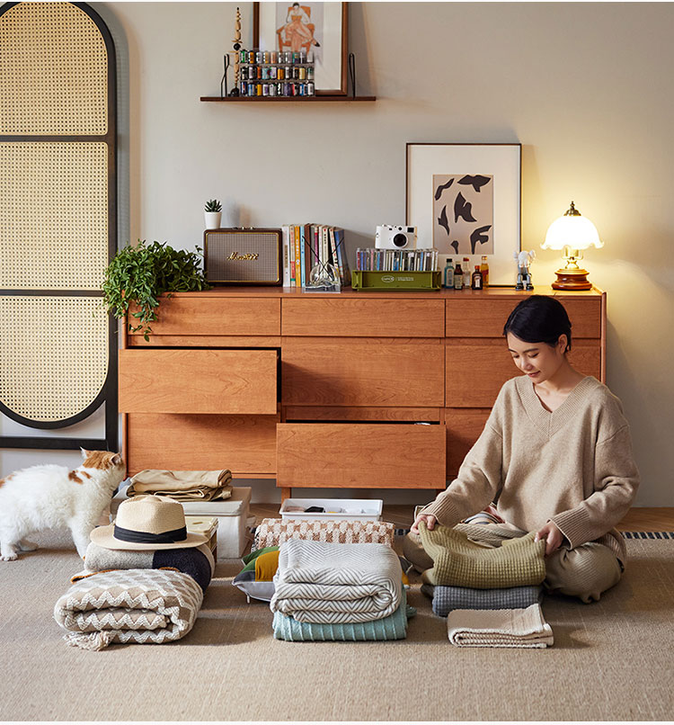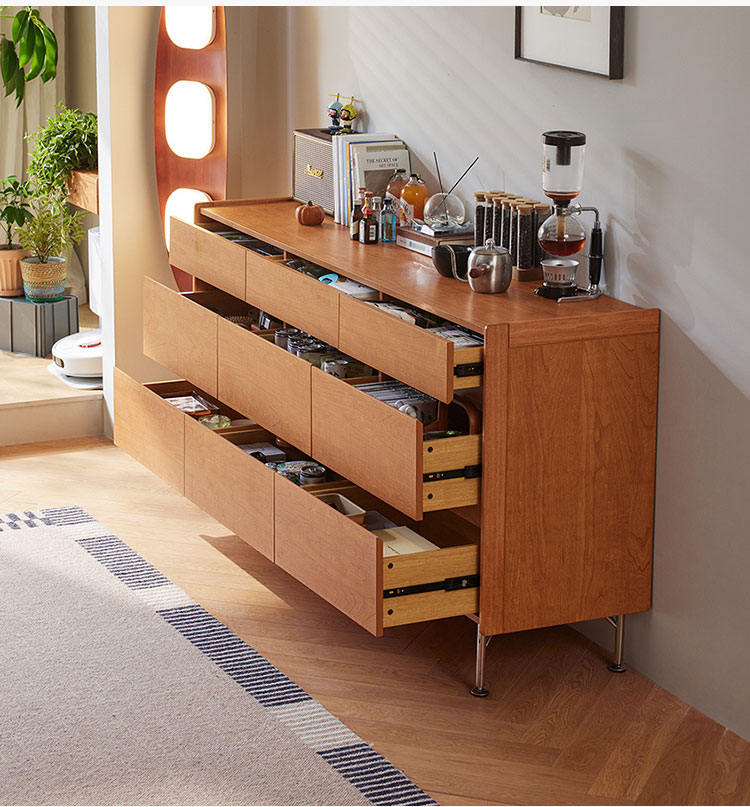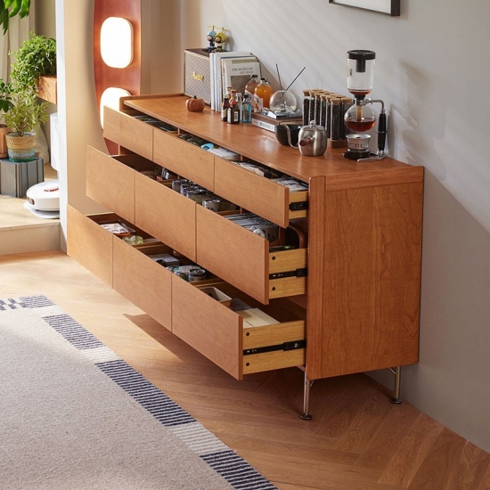 7Lemari Penyimpanan Kayu Bergaya Nordik dengan Laci KQ3E-A