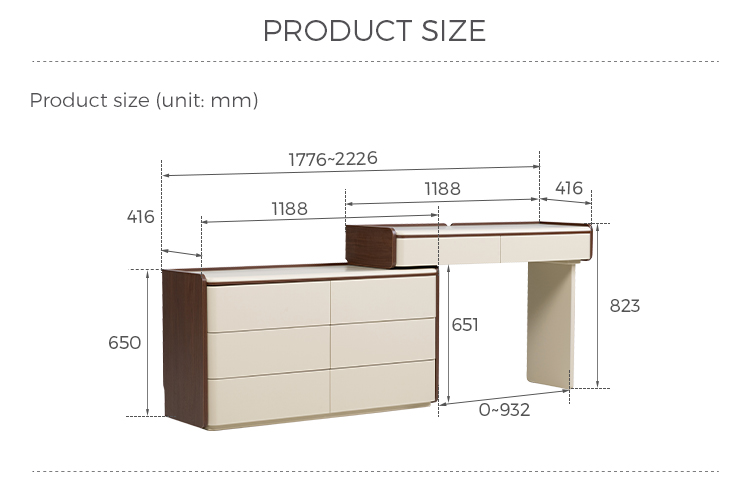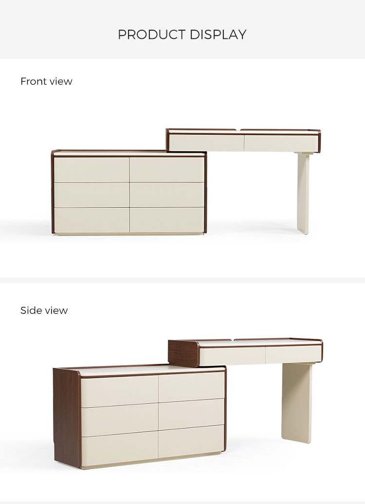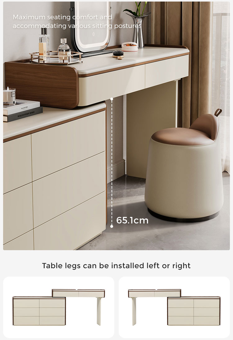 Desain Harmonis: Dibuat dengan garis-garis bersih dan sentuhan akhir berkualitas, meja rias ini memancarkan keanggunan abadi. Desain yang kohesif memastikan cermin, laci, dan rangka bekerja sama untuk menciptakan titik fokus kemewahan yang elegan.