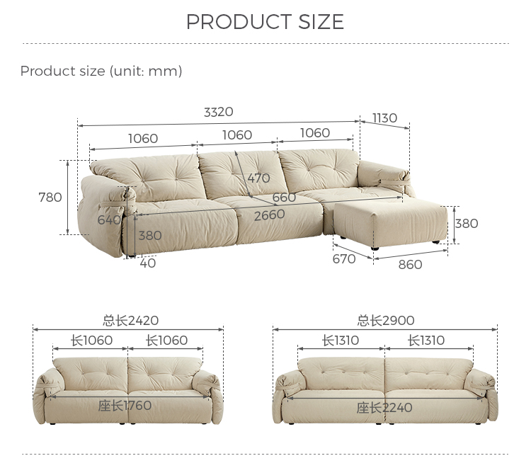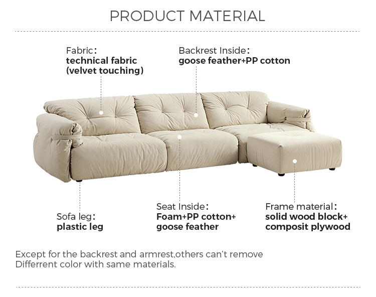 Bingkai: Kayu solid + Kayu Lapis Busa: Beludru poliester + Busa boneka+ Busa berkualitas tinggi Kaki: Kayu kayu putih |