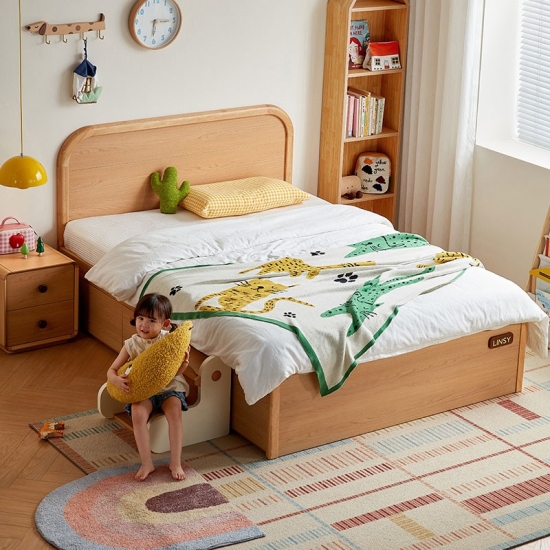 Tempat Tidur Anak Kayu Solid Kokoh dan Hemat Ruang dengan Penyimpanan VH1A-A |